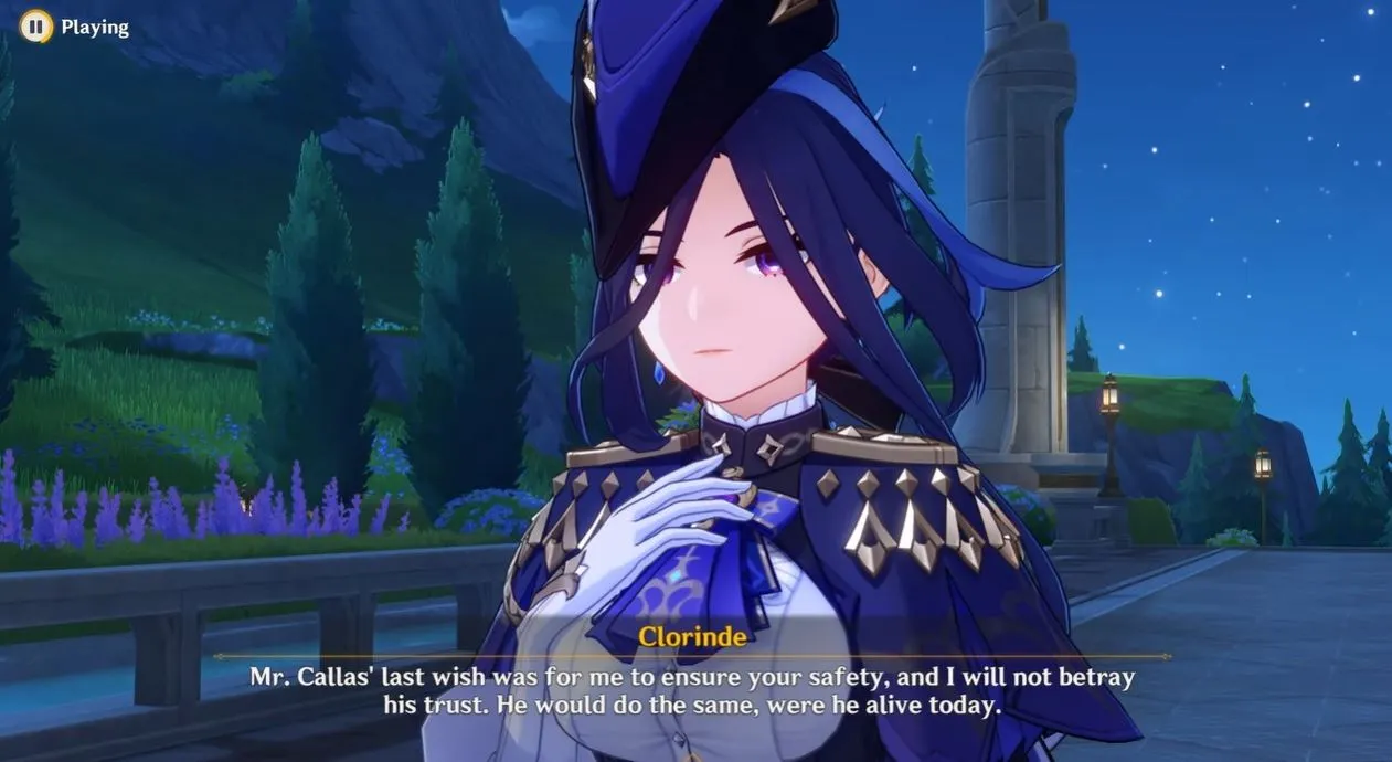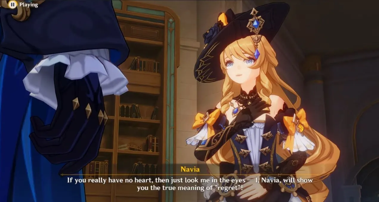 Безсумнівно, зіркою цього Archon Quest є Навіа, президент Spina Di Rosula. Її особистість, ставлення, передісторія та розвиток персонажа справді сяяли протягом усього квесту. Другий акт квесту більше нагадував Navia’s Story, який сам по собі непоганий, оскільки він пов’язаний із великою схемою речей, особливо з темою всього сюжету: Справедливістю. Навія є другим президентом Spina Di Rosula, першим був її батько – Каллас.