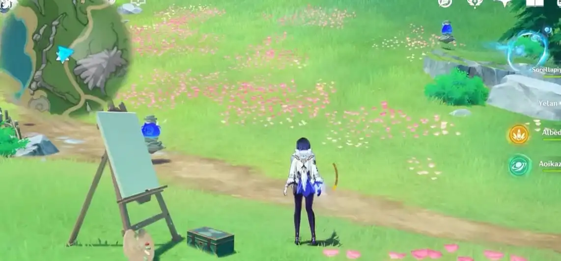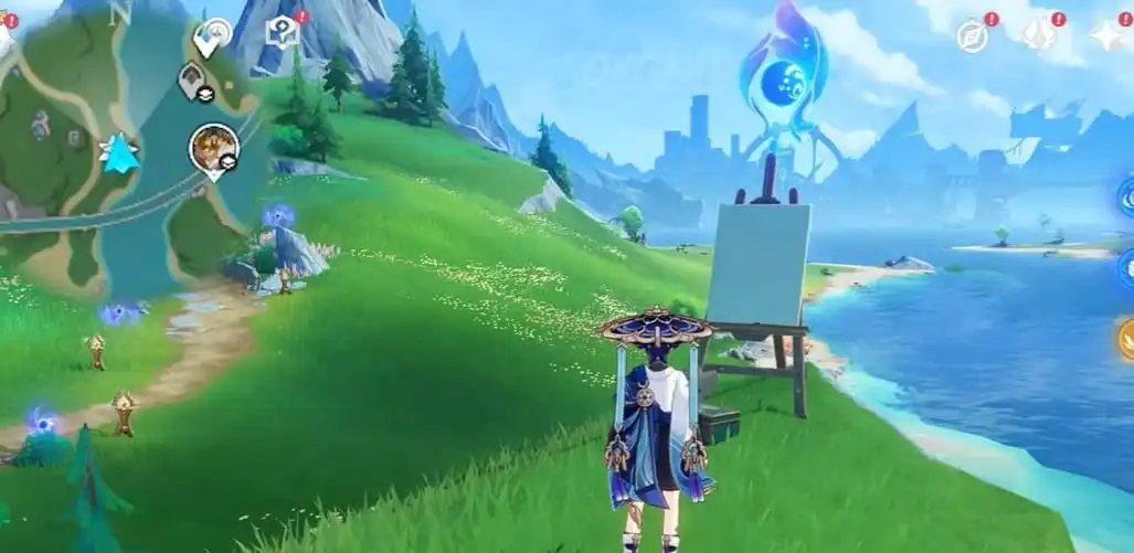 Використовуйте точку телепорту на захід від Court of Fontaine і прямуйте на північ, доки не побачите кілька механізмів вітряків. Взаємодійте з ними, щоб виявити місце розташування наступного полотна.