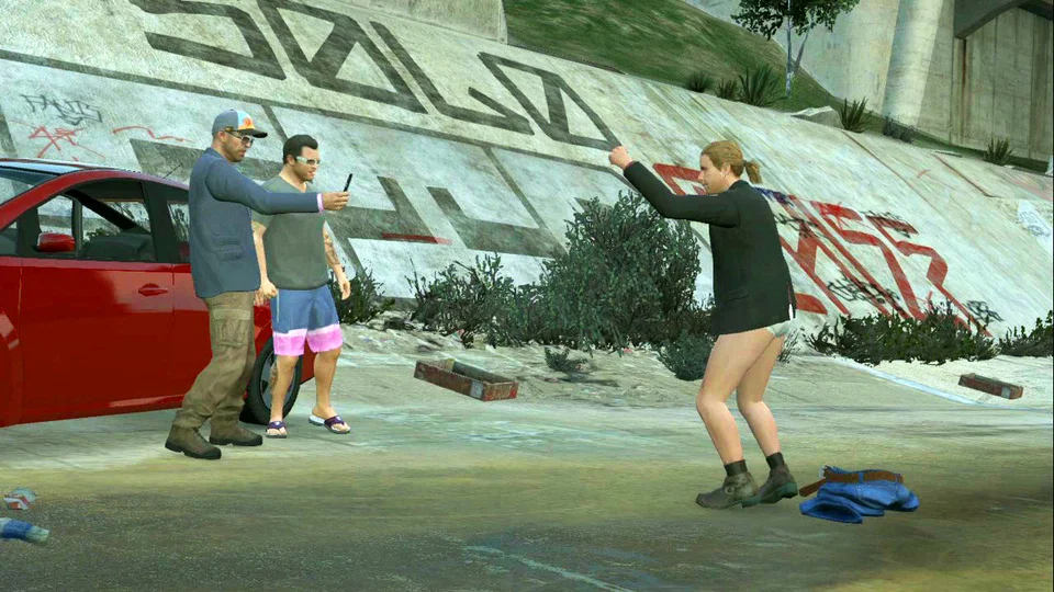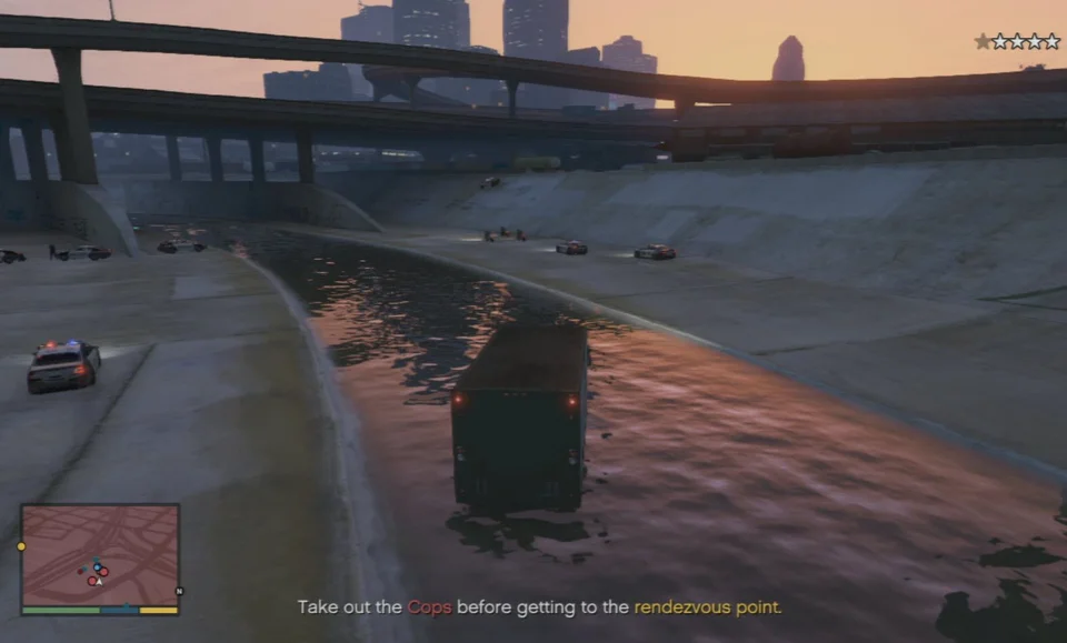 Витримайте 3 хвилини принаймні на 3-зірковому рівні розшуку з усіма трьома персонажами разом поза місією.