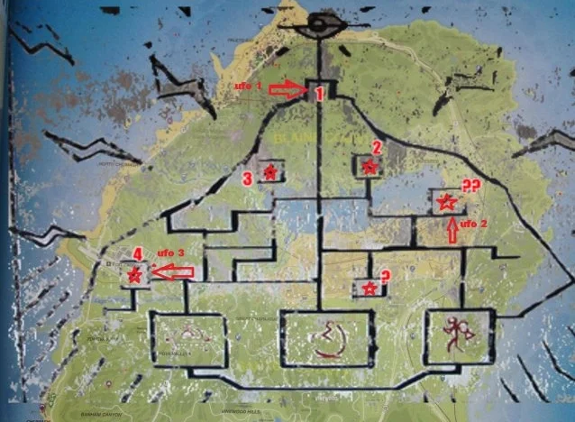 Ретельно прихована картина під платформою на найвищій точці Chiliad є точкою спостереження за добре задокументованою появою Літаючої тарілки після гри, яка відбувається пізно вночі під час грози.