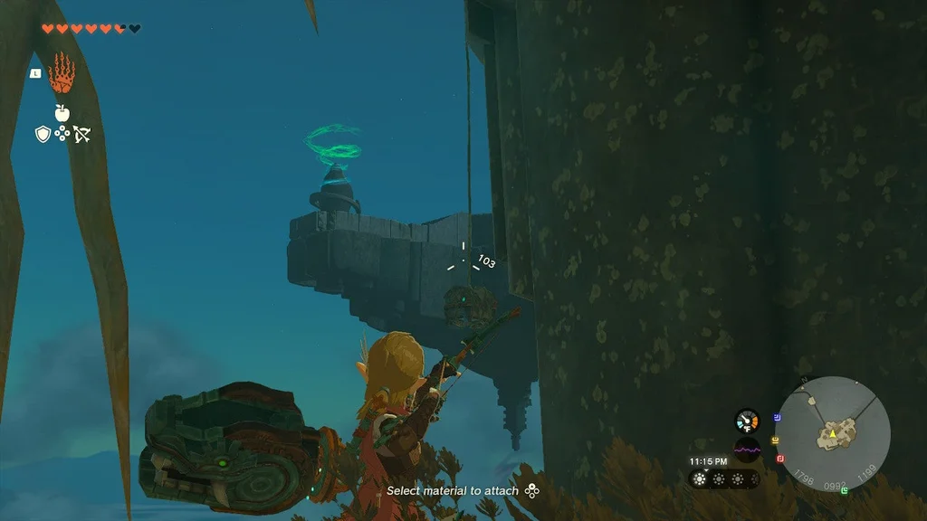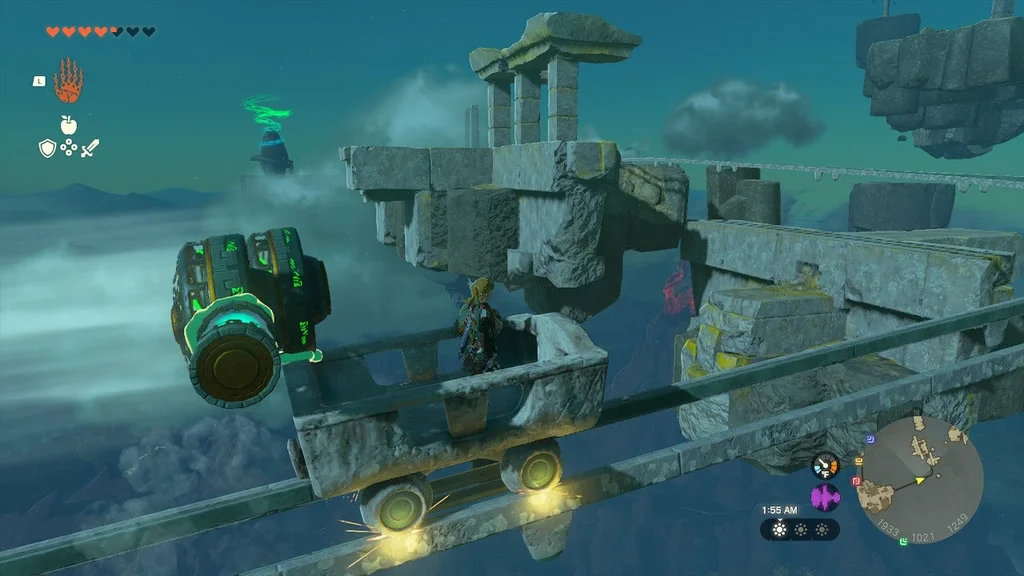 Сідай у візок і їдь на наступний острів. Тут ви можете отримати скриню, що висить на мотузці, вистріливши в неї стрілою (всередині знаходиться карта скарбів). Убийте Конструкцію та підніміться вгору. У цій камері є ще одна конструкція.