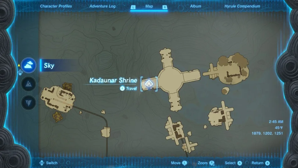 Розташування святині: святиню Кадаунар можна відкрити, досягнувши та активувавши панель святині в небі Елдін.