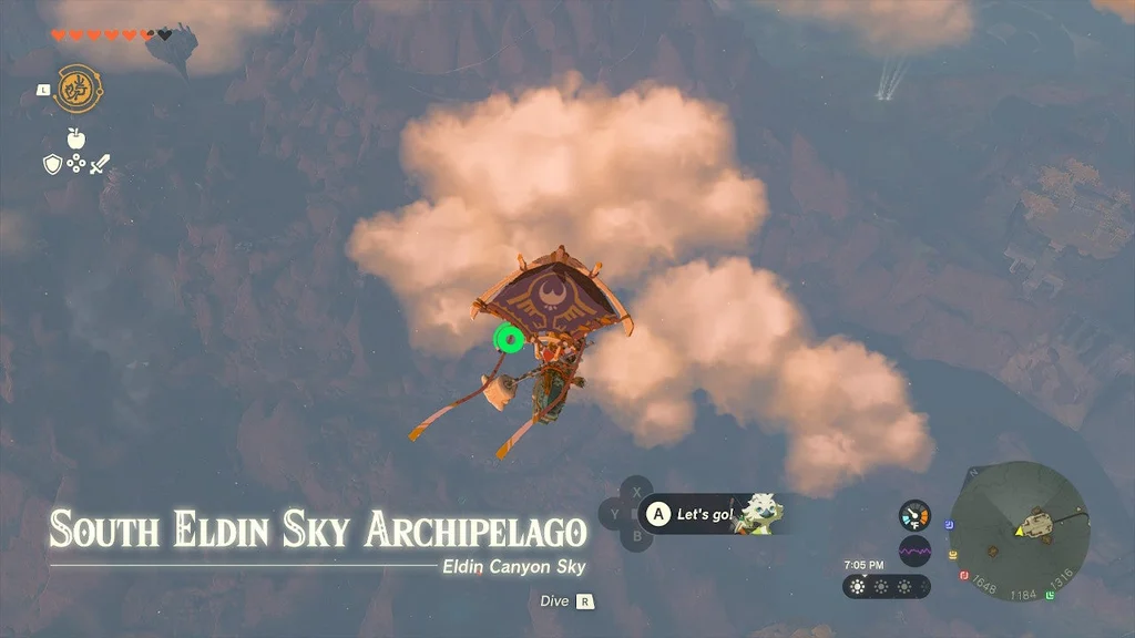 З вежі Eldin Canyon Skyview Tower підніміться в повітря та попливіть на схід. Невеликий острів тут має шляхи, що ведуть до Святині, яка добре видно високо вгорі.