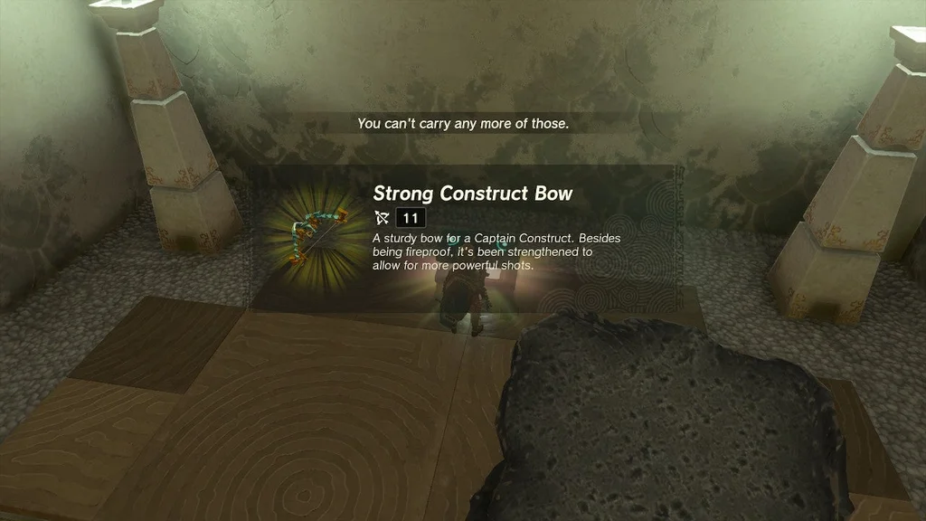 Перенесіть свій кам’яний міст до наступної кімнати та поверніть ліворуч: тут ви можете покласти свій міст під кутом через лавову яму до виступу зі скринею на ньому. Всередині є міцний лук Construct.