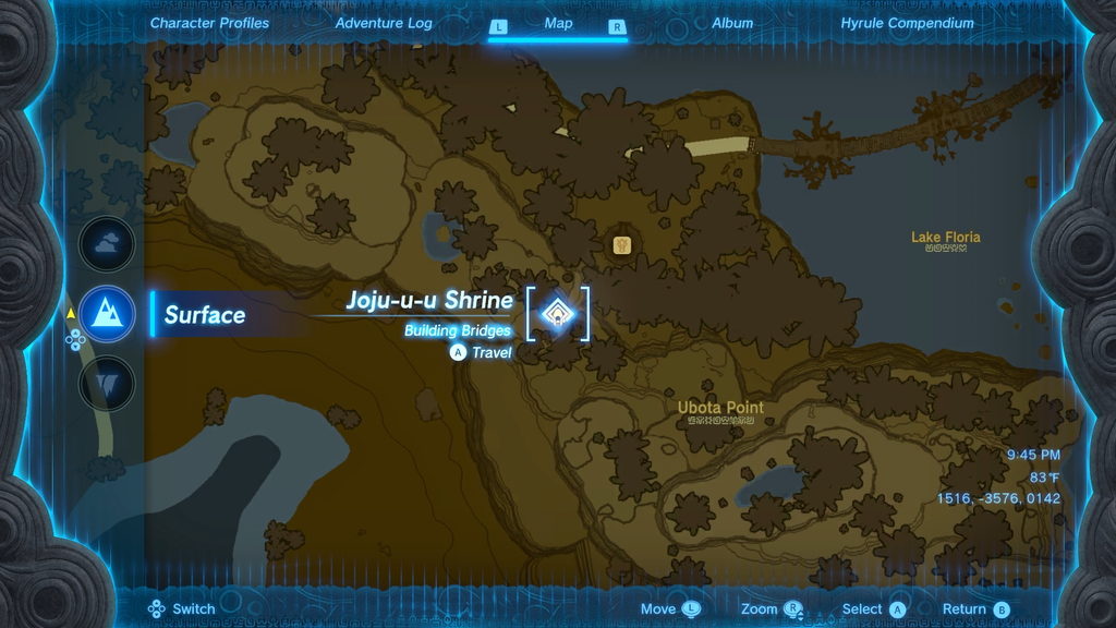 Один зі способів дістатися до цього храму — почати зі святилища Джоджу-у-у біля стайні Лейксайд. Політ на параплані до водоспадів через озеро. Якщо у вас є Zora Armor, Лінк може підпливти до водоспаду
