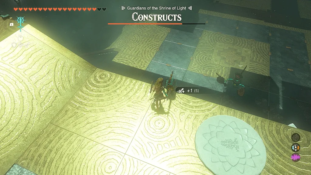 Увійшовши в майже схожу на лабіринт святиню, ви побачите дві споруди, що слідують одна за одною. Ці конструкції неймовірно легко знищити, оскільки одна призначена для ближнього бою, а інша — для використання лука дальньої дії. Використовуючи лінію видимості, ви можете легко сховатися від використання лука і збити першого довгою палицею.