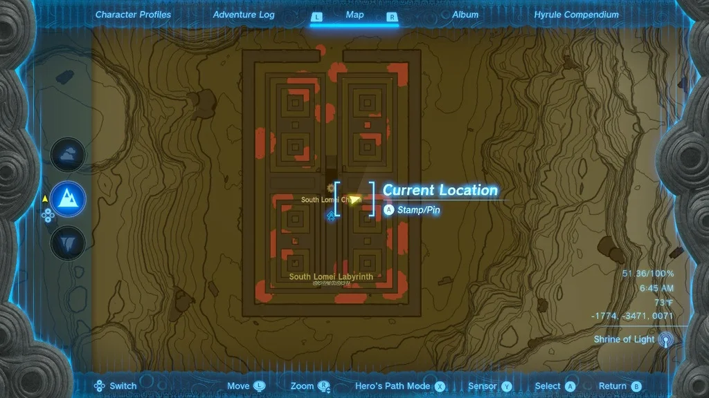 Розташування святині: ця святиня розташована на виході лабіринту Південний Ломей у пустелі Герудо. Дотримуйтесь нашого посібника, щоб знайти свій шлях.
