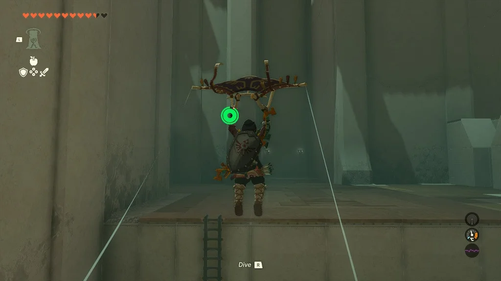 Тепер ви підете до маркера на карті на південному сході. Уперше в цьому квесті набіжте на Skyview Tower і використовуйте її, щоб підірвати Лінка в небо. Коли ви зможете, активуйте свій параплан і почніть ковзати до південно-східного маркера на карті.