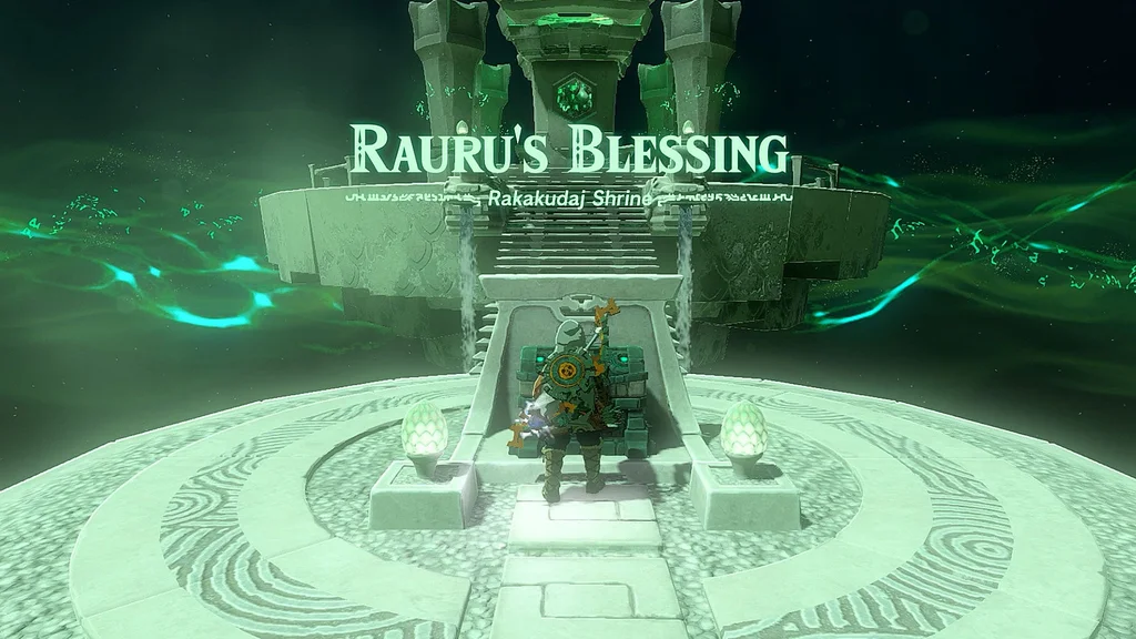 Святилище Ракакудадж — це квест святині, який починається на північно-східній стороні каньйону Герудо. Коли ви вперше підійдете до святині, яка стоїть на виступі над бурхливою річкою, ви помітите, що святині насправді там немає, що вказує на те, що це квест святині, який вимагає від вас отримати кристал святині та віднести його назад на платформу.