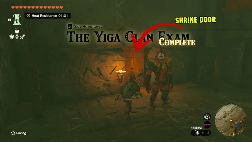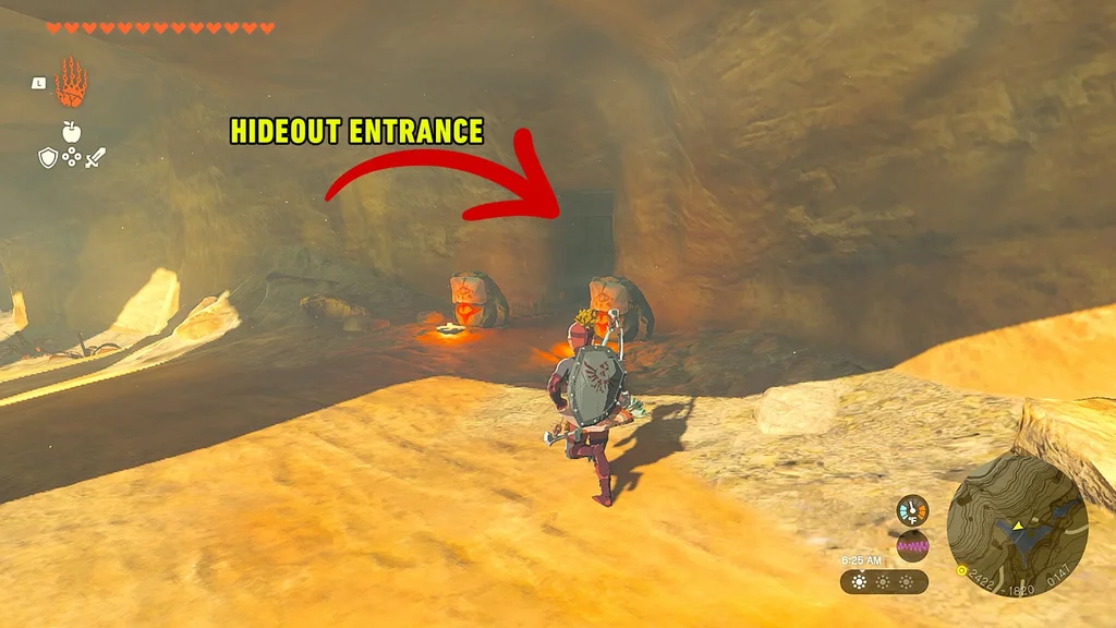 Уздовж схилу скелі ви побачите двері з двома статуями Йіги. Постукайте у двері, і оскільки Лінк повністю одягнений у своє спорядження Yiga, вам дозволять увійти.