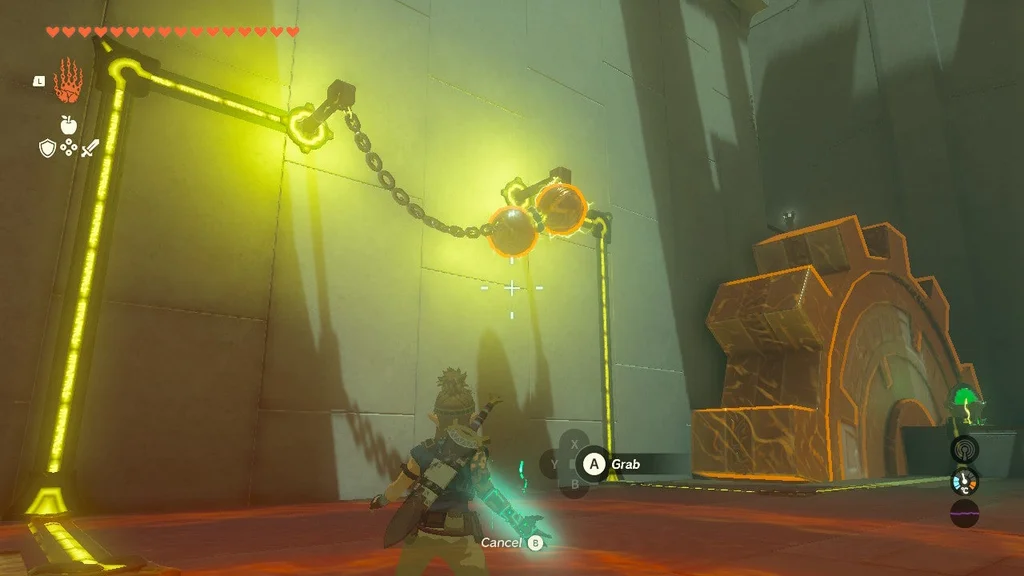Тут ви знайдете головоломку, схожу на наведену нижче, однак залізні кулі розташовані далі одна від одної. Виберіть один із двох і за допомогою Ultrahand підтягніть його ближче до іншого. Утримуйте його кілька секунд, а потім відпустіть.