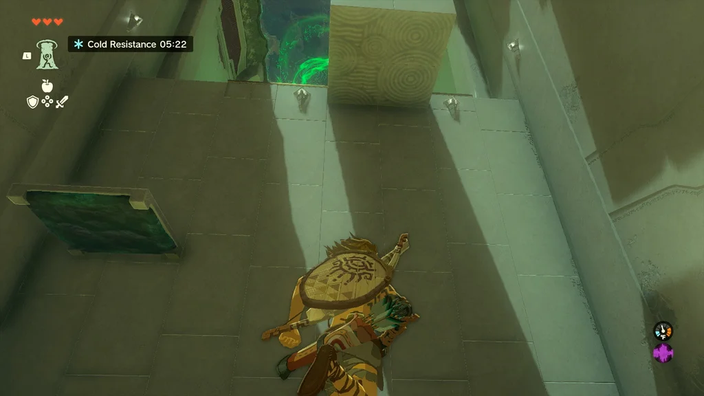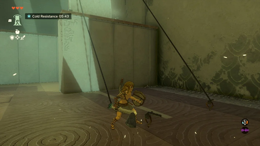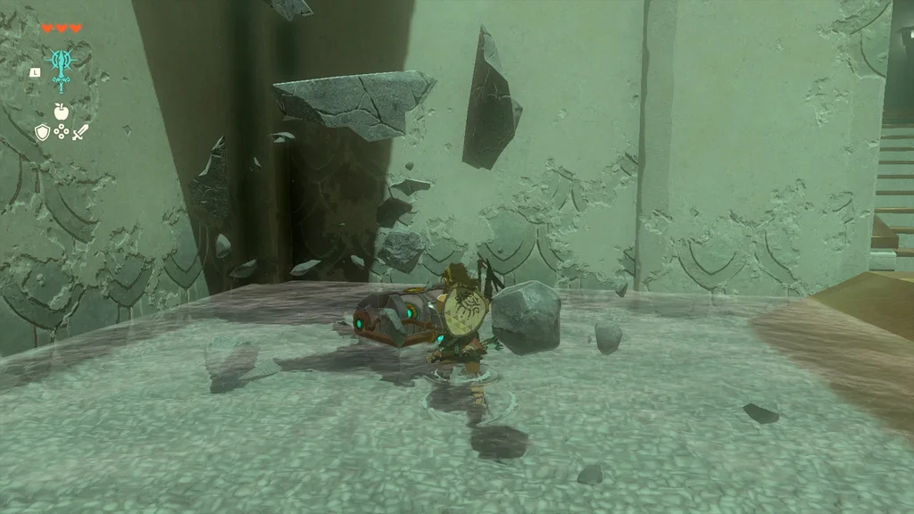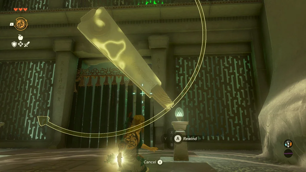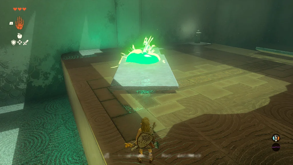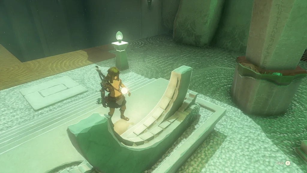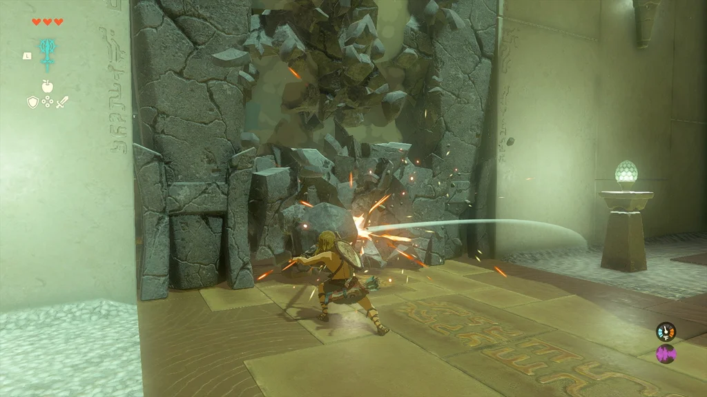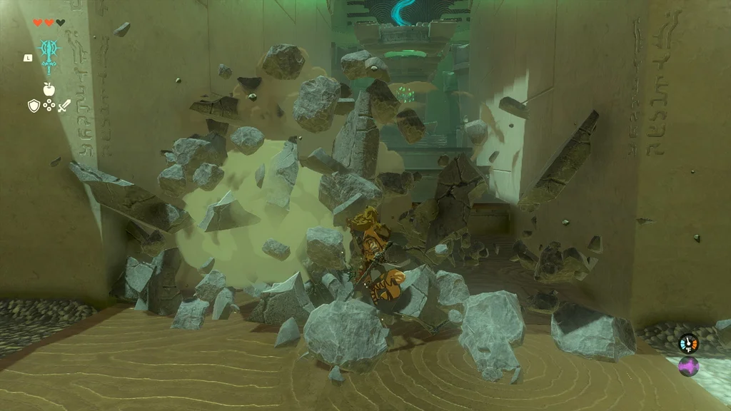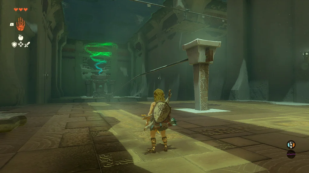 Усередині храму дух Рауру підкаже вам, як працюють ці святині. Якщо ви грали в Breath of the Wild, у вас має бути робоча теорія: вам потрібно буде розв’язати різноманітні головоломки, щоб наприкінці дістатися до внутрішнього храму та отримати нагороду Світлом благословення. Щоб допомогти вам пройти, Рауру активує першу з кількох здібностей на новій руці Лінка: Ультра-рука.