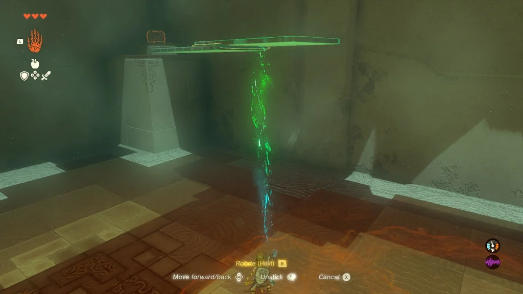 Інший головний важливий аспект Ultrahand можна знайти в наступній головоломці: розташовуючи будь-які рухомі матеріали близько один до одного, ви можете натиснути A, щоб прикріпити їх майже незнищенною зеленою речовиною. Це дозволить вам створити низку об’єктів, злитих один з одним, багатьма винахідливими способами.