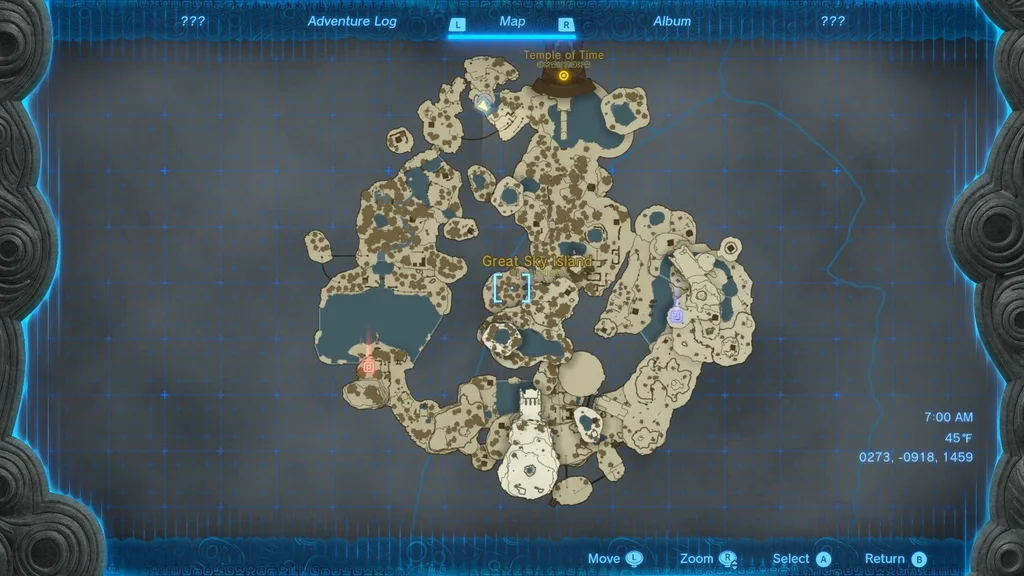 Розташування святині: до цієї святині можна дістатися через острів Великого Неба — пошук принцеси Зельди та квест «Зачинені двері». Це ліворуч від храму, на єдиному острові що доступний спочатку.