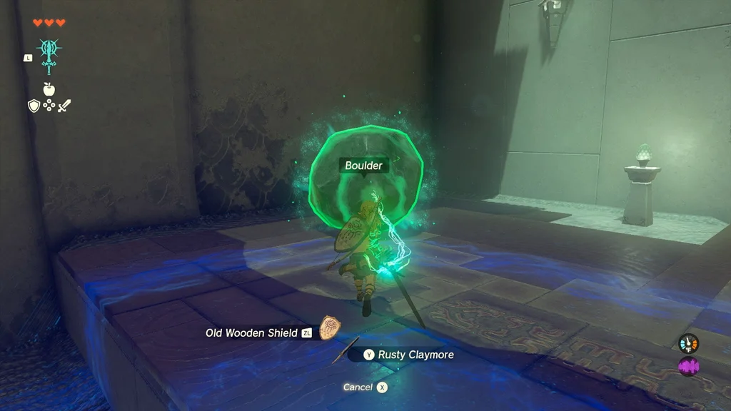 Ultrahand працює дуже подібно до здібності Magnesis з Breath of the Wild - з кількома дуже важливими змінами. Її можна використовувати на більшості матеріалів, які не є живими або прив’язаними до землі. Тримаючи предмет за допомогою Ultrahand, ви можете не лише піднімати його вгору, витягувати чи втягувати за допомогою D-Pad — ви також можете утримувати R, щоб почати обертати предмет горизонтально чи вертикально.