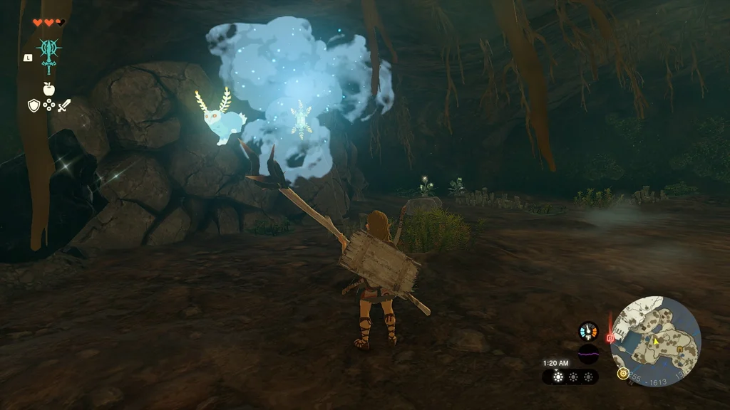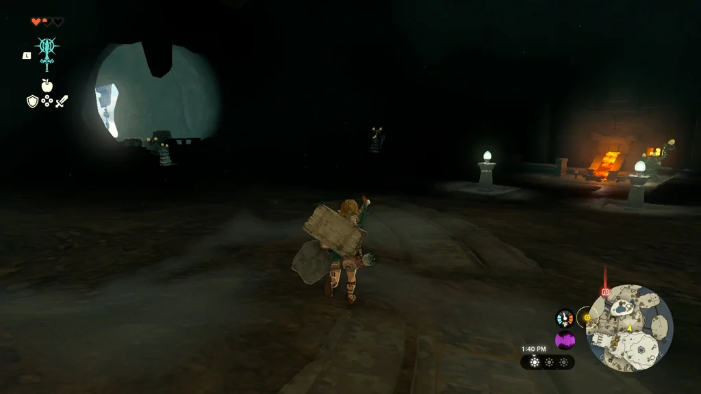 Скористайтеся ними, підкинувши їх (утримуючи R, а потім «Вгору» на D-Pad), або приставивши одну до своєї стріли під час прицілювання з лука, і вистріліть нею, щоб негайно побачити, як відкривається печера.
