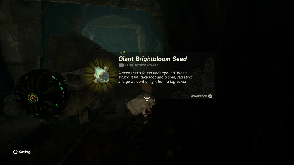 Зрештою візок вдариться об блок на дорозі, тому покиньте його та перестрибніть через освітлений бар’єр, щоб побачити джерело світла. Конструкція скаже вам, що насіння Brightbloom створюють світло, якщо їх вдарити, або їх можна зібрати, коли вони не цвітуть. Біля місця, де зупинився візок, є навіть гігантське зерно Brightbloom, яке ще більше освітлює темну область.