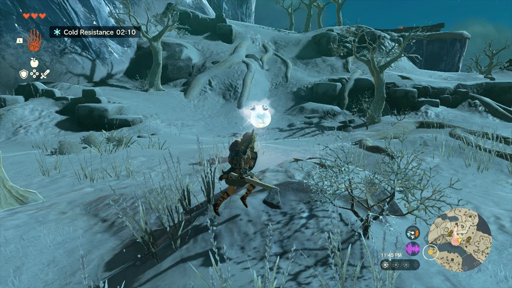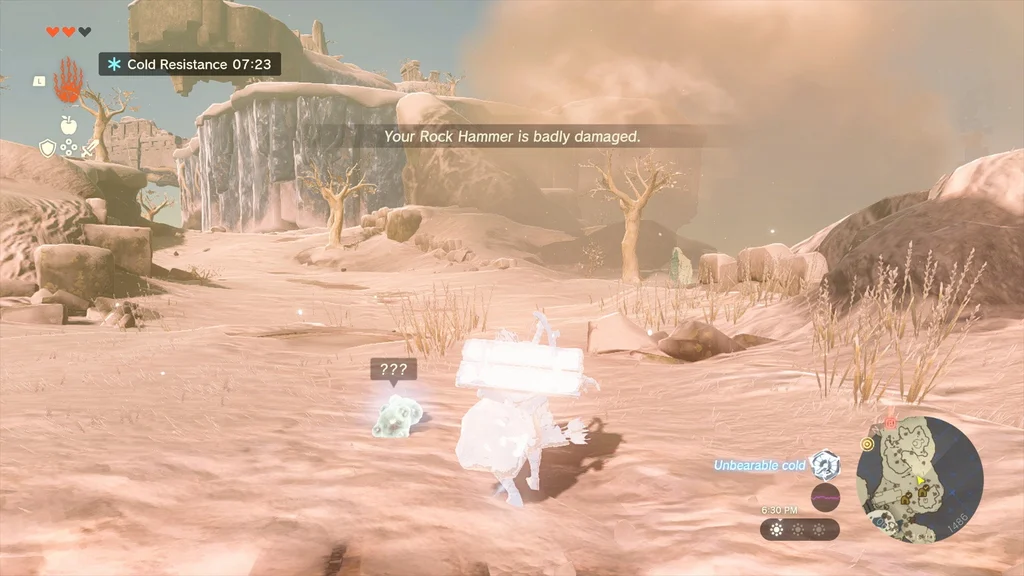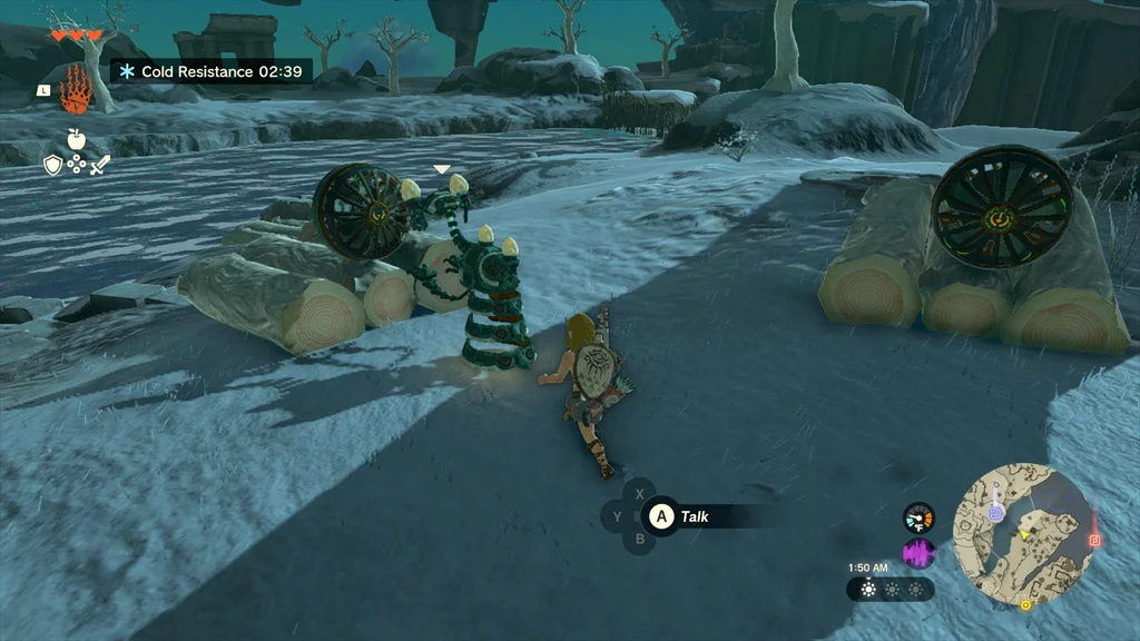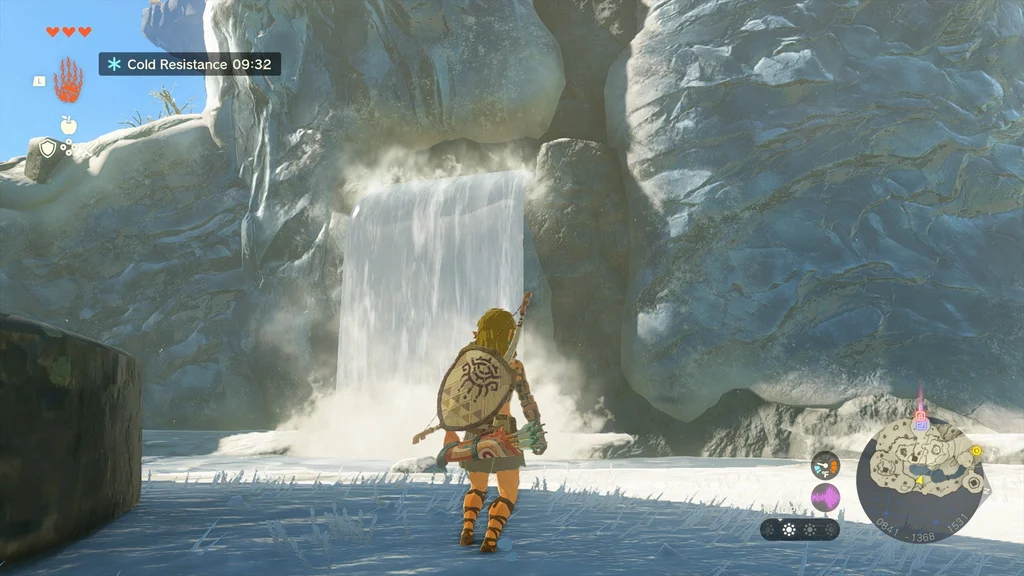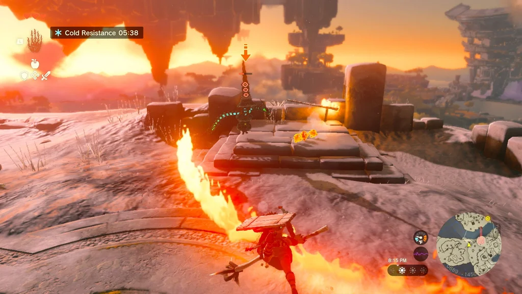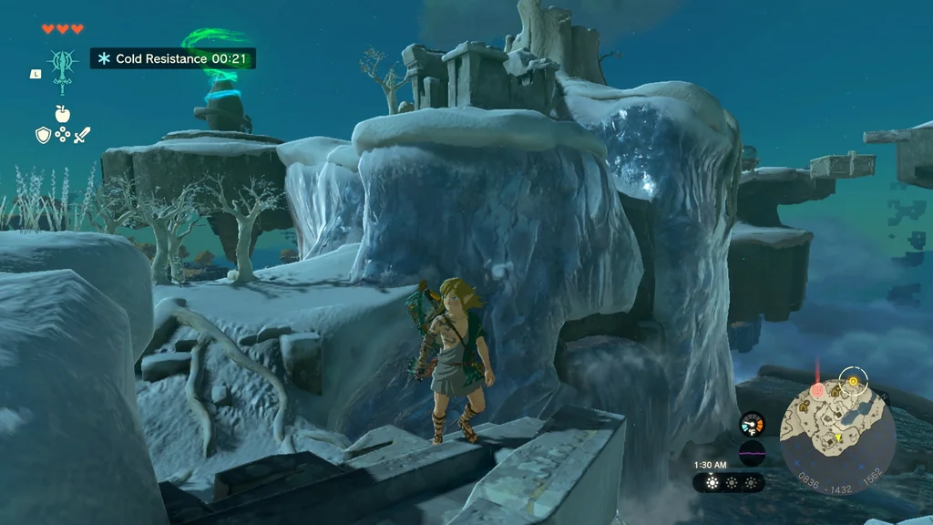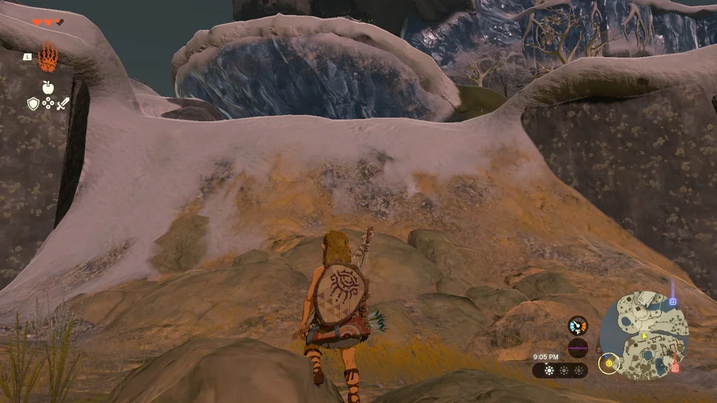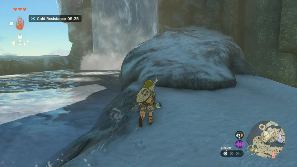 Якщо ви намагаєтеся дістатися до засніженого храму спочатку через Храм Часу, ваш маршрут буде зовсім іншим, ніж якщо б ви продовжили шлях від храму на березі озера. Вам доведеться потрапити в регіон із холодною температурою через руїни на схід від Храму Часу. На щастя, в одній із руїн ви можете знайти каструлю, яку вам слід використати, щоб приготувати гострий перець, який росте перед схилами, і запастися їжею, яка дозволить вам вижити при низьких температурах без пошкоджень (п’ять варених перців будуть дає вам холодостійкість 12:30).