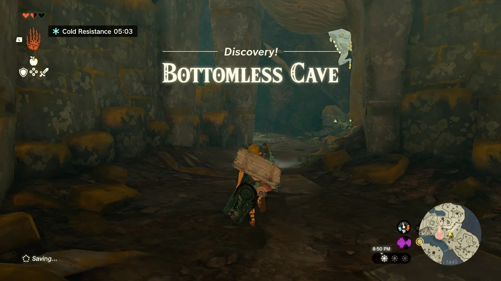 Візьміть Меч-випромінювач полум'я у переможеного Конструкції та вирушайте в Бездонну печеру. Як випливає з назви, у печері є велика прірва, яка веде до нижнього острова, падіння в яке ви не переживете, тому рухайтеся всередину обережно.