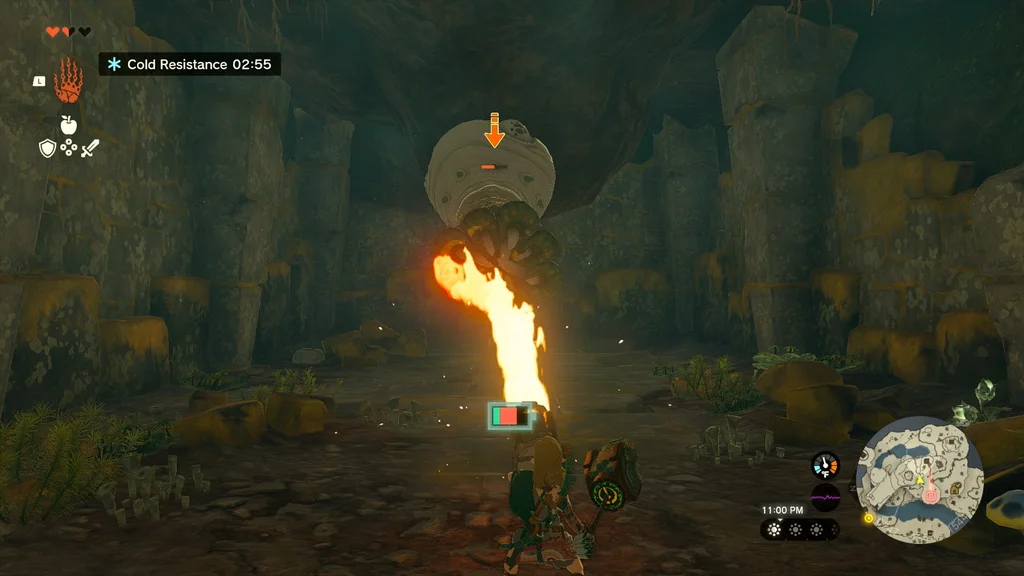 Знищуйте будь-якого чучу, який влаштує вам засідку на дорозі до вершини, де ви знайдете вхід до іншої печери та загін солдатських конструктів ліворуч. На щастя для вас, вони опиняються в руїнах, які заросли травою, що робить їх ідеальними для того, щоб закинути туди вогняний плід і підпалити їх усі. Переможете їх усіх, і ви зможете пограбувати скриню неподалік, щоб отримати опал. Злившись, вони викидають швидкі струмені води або можуть вибухнути під час пострілу зі стріли, тому будьте обережні та використовуйте їх економно!
