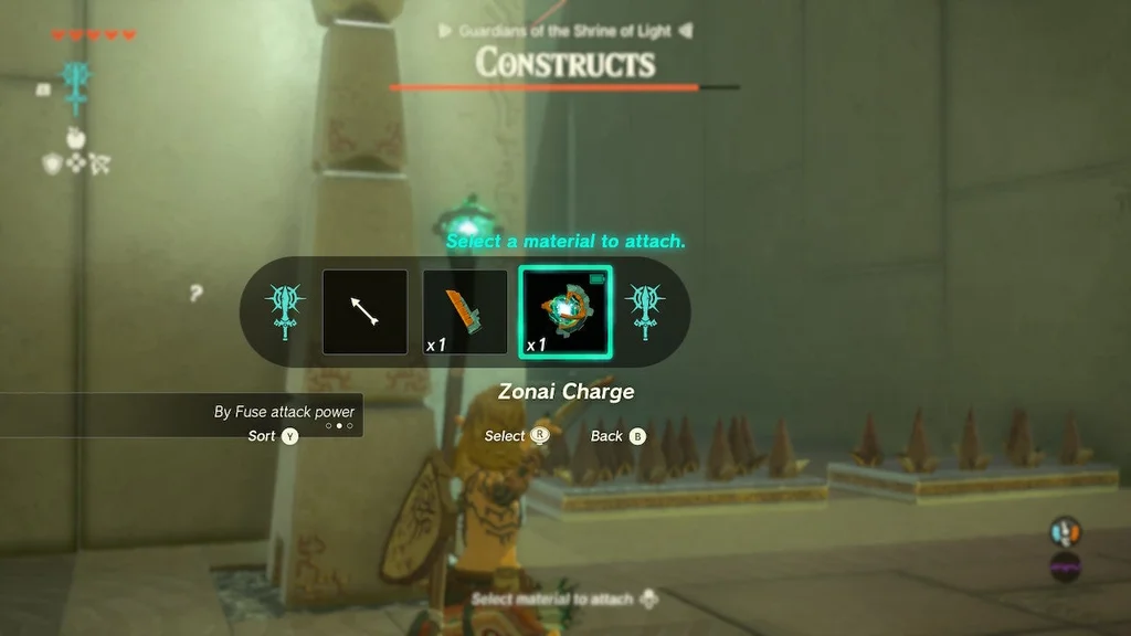 Мета тут — убити 5 Zonai Constructs лише за допомогою наданої зброї та обладнання. Це означає, що вам потрібно підійти творчо до Fuse, щоб покращити свою зброю.