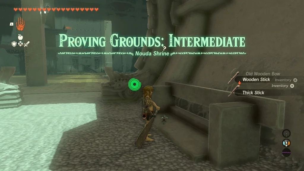 У Nouda Shrine’s Proving Grounds: Intermediate challenge вам доведеться вбити всі конструкції в храмі. У вас не буде власної зброї чи предметів, натомість вам доведеться використовувати оточення та зброю, яку скидають вороги.