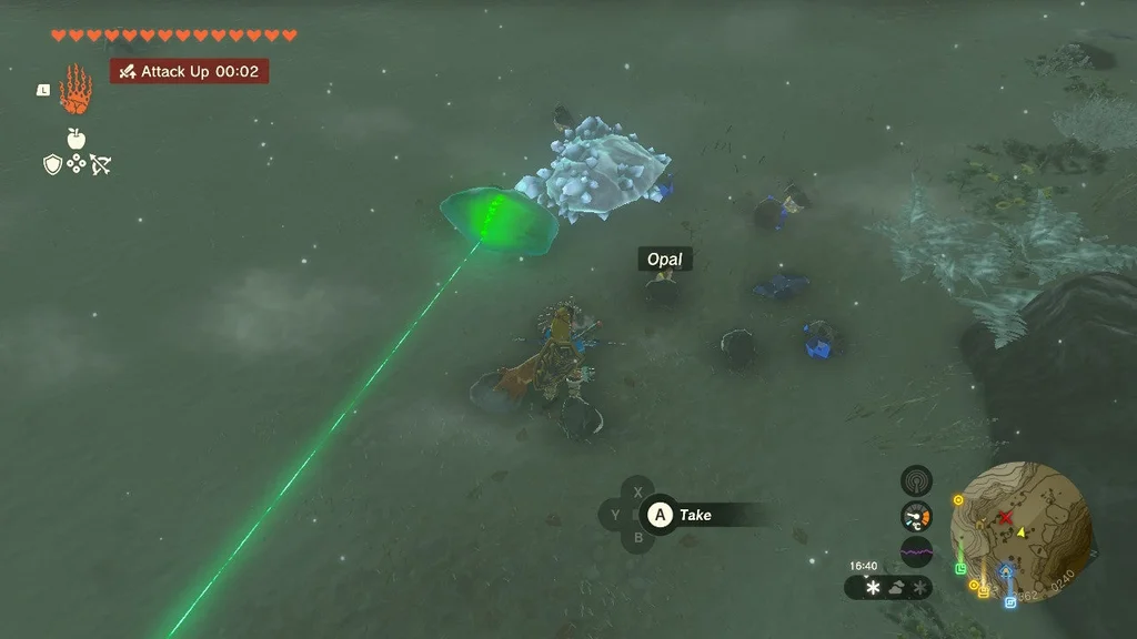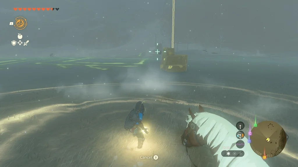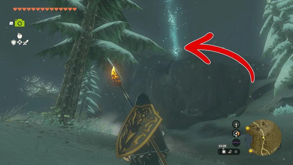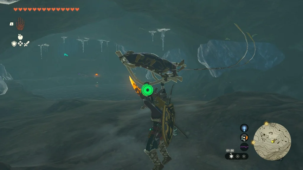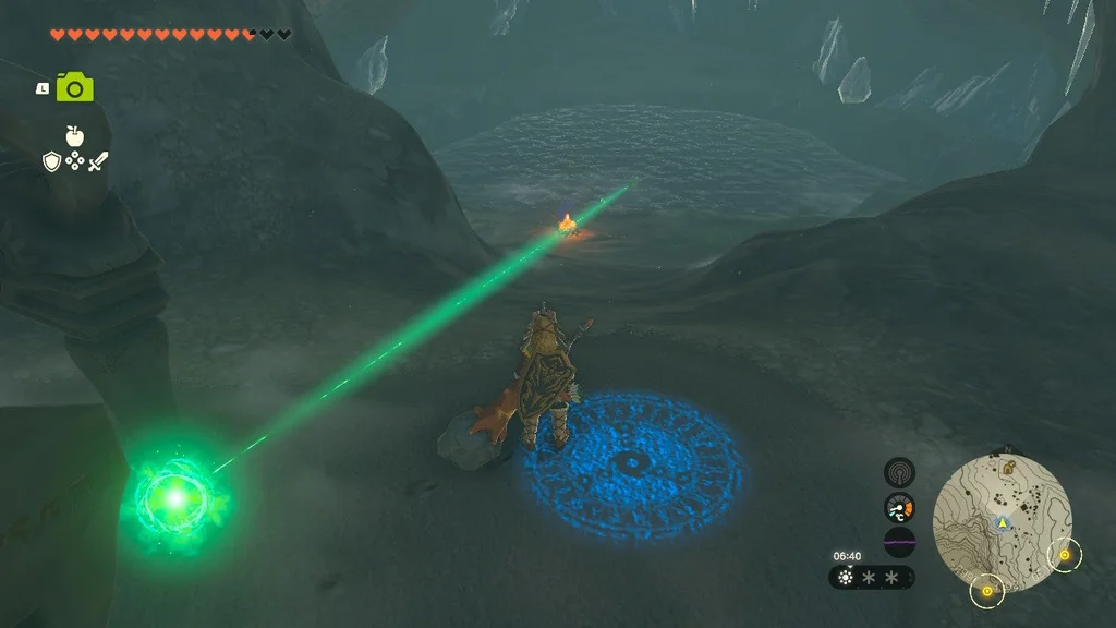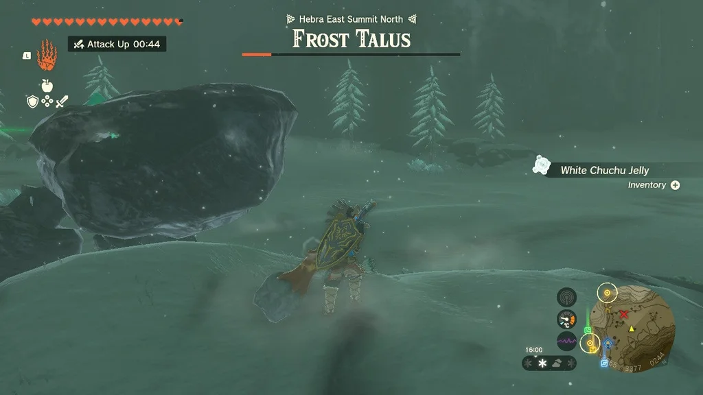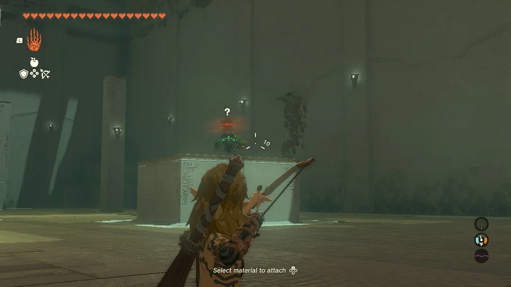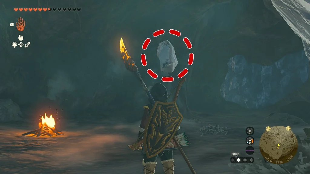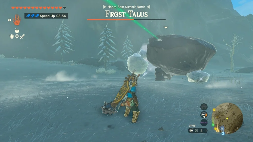 Коли Frost Talus впаде, візьміть здобич (не забудьте злити Серце Talus зі зброєю! Його не можна покласти у ваш інвентар) і використовуйте Ultrahand на кристалі храму. Віднесіть його до святині, щоб завершити квест святині.