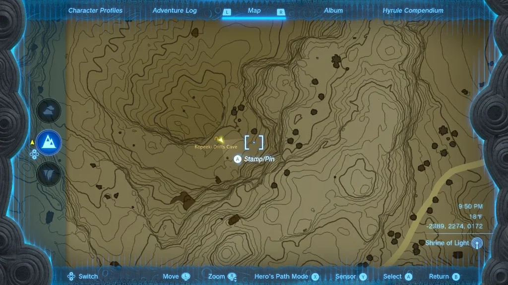 Розташування святині: Це печерне святилище. Пройдіть до місця Селмі на північний захід від Східної вершини Хебри. Біля багаття ви побачите Blupee, який дивиться на північ. Слідуйте за нею, і вона приведе вас до схилу вниз і північно-західної печери гір Хебра.