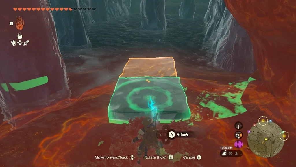Якщо у вас багато сердець, ви, ймовірно, можете використати їх як додатковий час, щоб бути у воді, коли ви захопите кристал храму за допомогою Ultrahand. В іншому випадку обов’язково зробіть маленький місток принаймні з двома-трьома крилами, поки не зможете дістатися до кристала за допомогою Ультраруки.