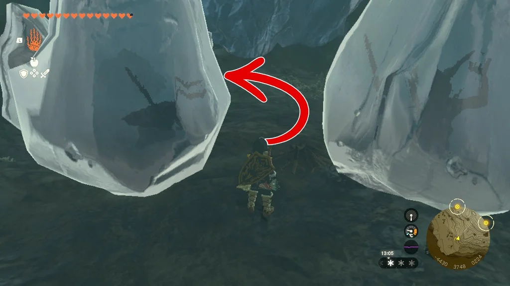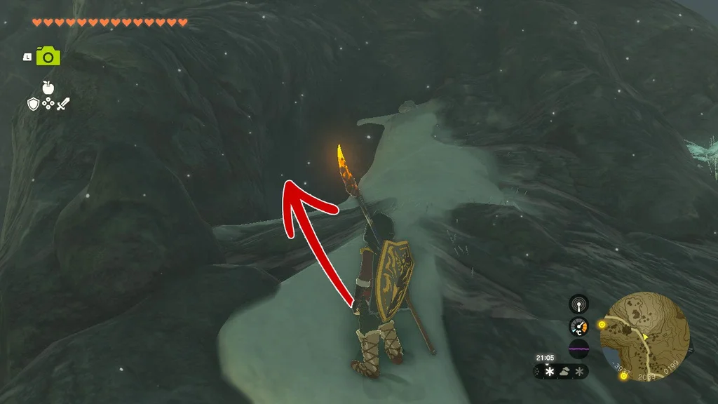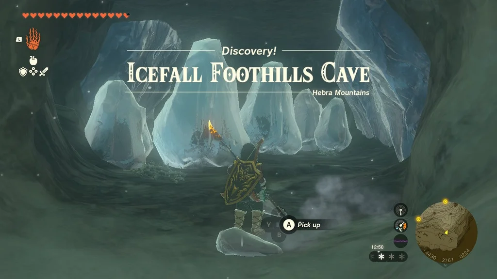 Ви можете знищити льодові стовпи за допомогою вогняного плоду або просто піднести до нього зброю з елементом вогню. Це можна зробити, розпаливши вогонь за допомогою деревини та кременю, а потім підпаливши зброю, або, ще краще, прикріпивши до зброї щось на зразок рогу Лізальфоса, що дихає вогнем. Незважаючи на це, ви розтопите тут чималу кількість льоду, тому будьте готові.