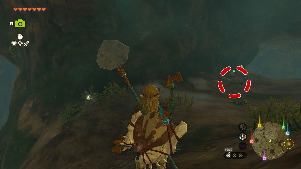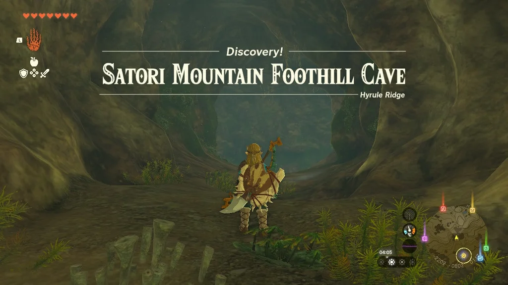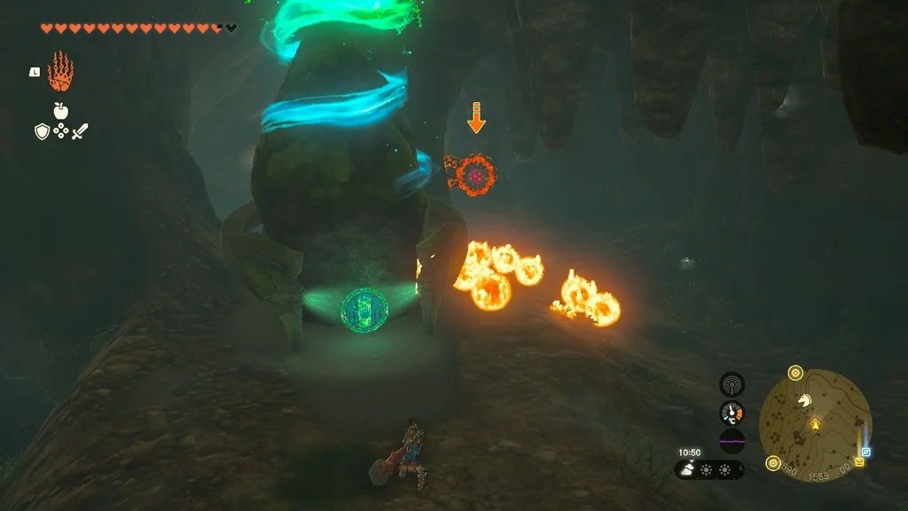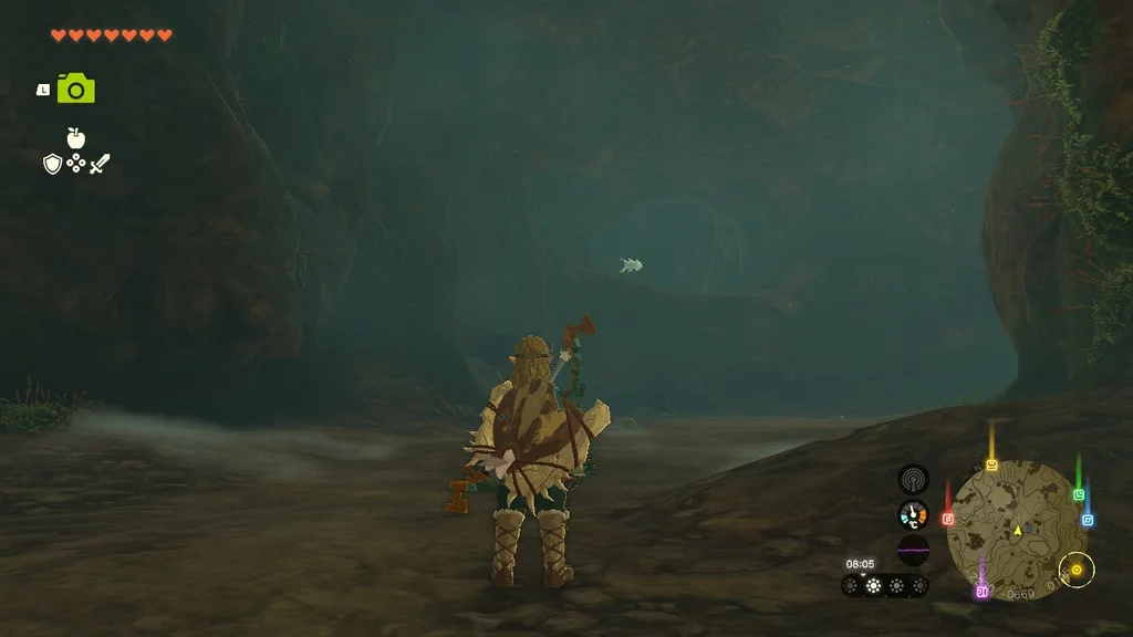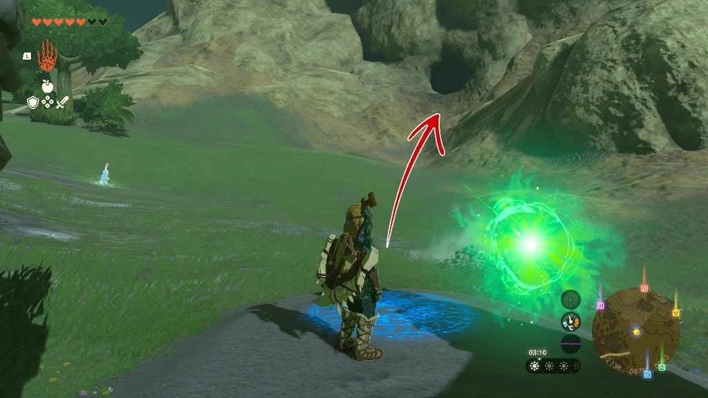 Увійдіть у печеру, і коли вона відкриється, ви, ймовірно, побачите промінь кристала, що стрибає. Це тому, що ця печера насправді є великим колом, і, на жаль, кристал святині знаходиться на шиї Hinox. Якщо у вас немає стріл, саме час їх отримати.