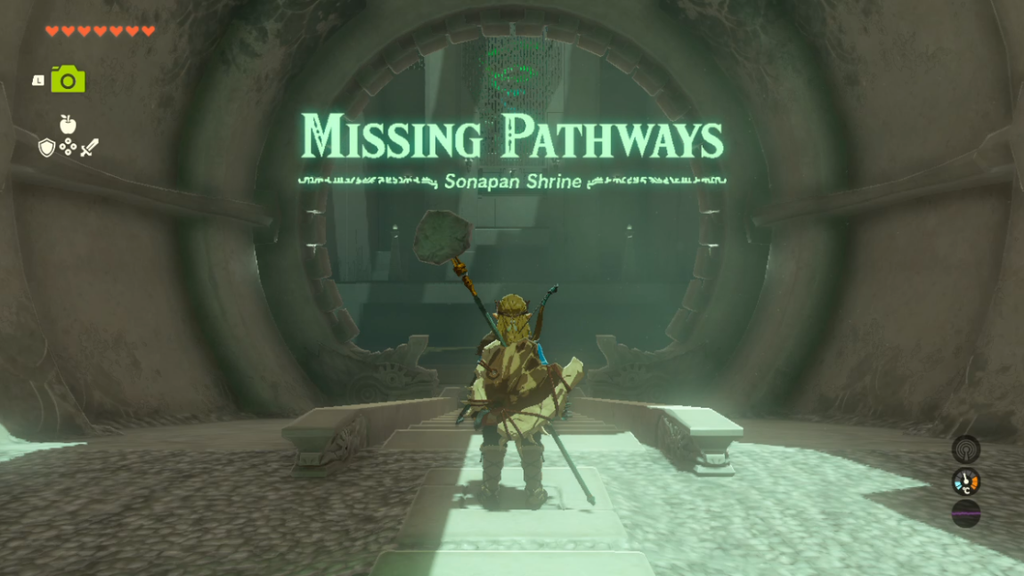 Sonapan Shrine (Відсутні шляхи) у The Legend of Zelda: Tears of the Kingdom — це святиня, розташована в регіоні Гірул-Рідж і є однією зі 152 святинь у The Legend of Zelda: Tears of the Kingdom. Ця сторінка містить інструкції щодо того, як знайти та увійти в храм, покрокове керівництво до самого храму та рішення головоломок, а також розташування скринь зі скарбами для храму Сонапан.