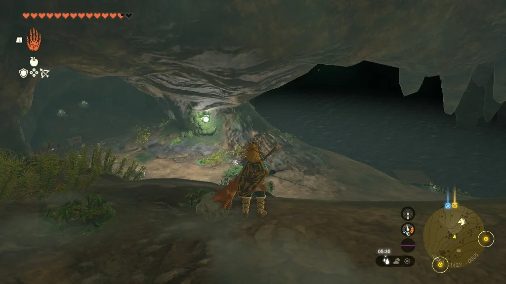 Увійшовши, ви спуститеся по довгому тунелю у воду. Випливіть і пройдіть стежкою, щоб побачити святиню глибше в печері. Перш ніж туди потрапити, вам потрібно буде перетнути велику нижню ділянку. На жаль, там також блукає рій Похмурих Рук.
