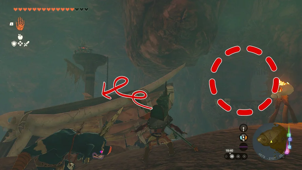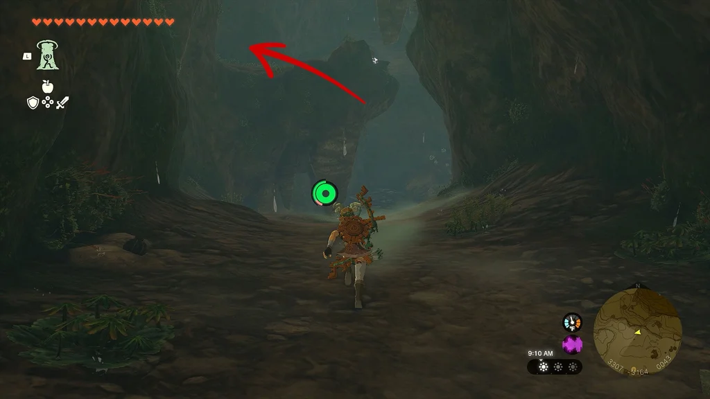 На виступі буде скриня зі скарбами. Поверніть до тунелю, і ви побачите два скелі, що звисають зі стелі. Знову ж таки, ви можете битися з ними, щоб отримати більше здобичі, або можете пробігти повз них прямо вгору по невеликому схилу до храму Баміток.