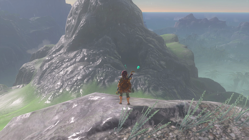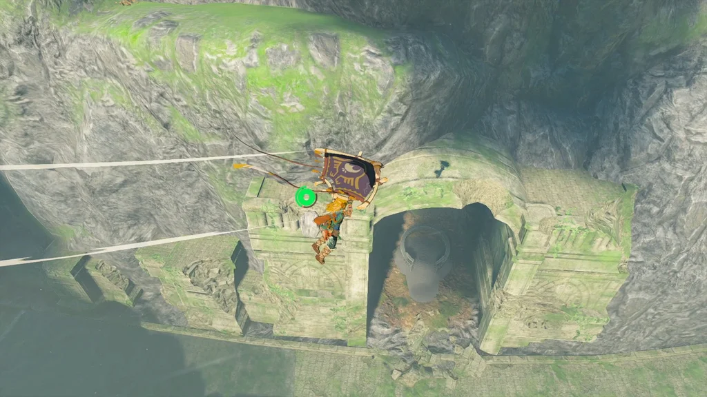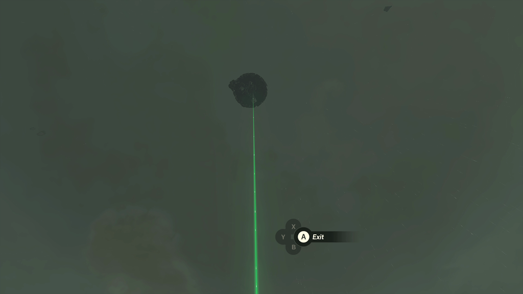 Перш ніж стрибнути на південь і ковзати до Небесного острова, який ми позначили раніше, рекомендується мати більше двох коліс витривалості або достатньо еліксирів чи продуктів, що підвищують витривалість, щоб компенсувати різницю. Якщо ви впевнені, що у вас достатньо, стрибніть із південного краю острова Великого Неба (того, на якому ви опинилися після телепортації до святині Ін-Іса), і ковзайте до острова Неба, на який вказує зелений промінь світла.