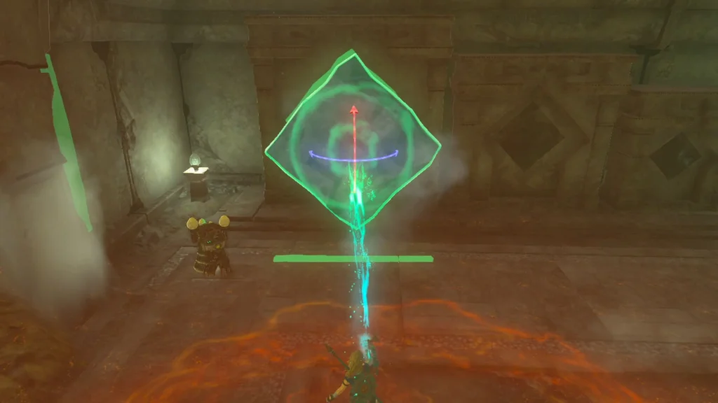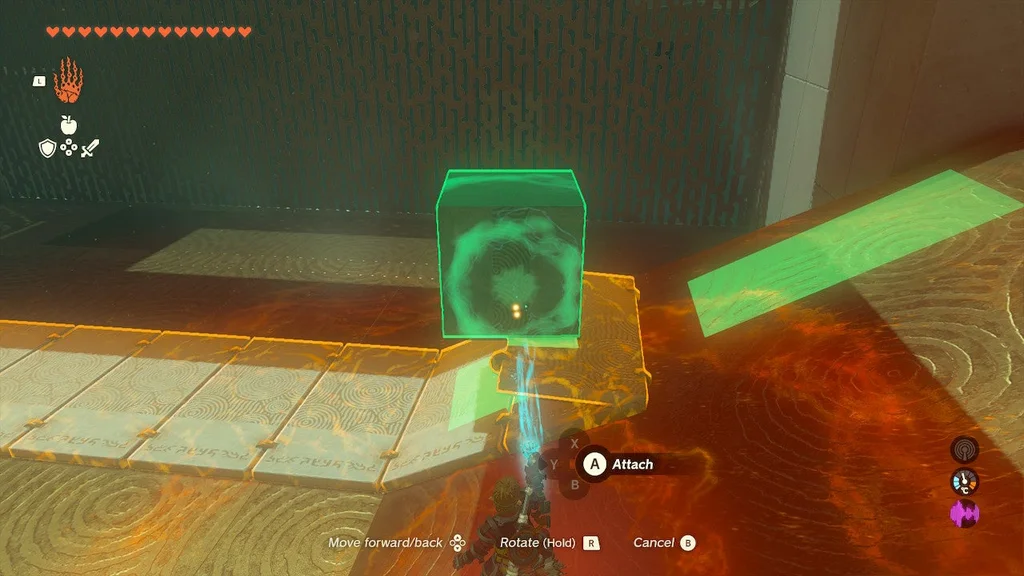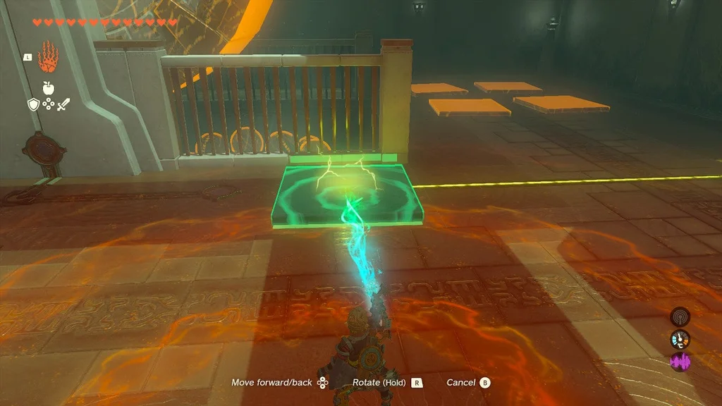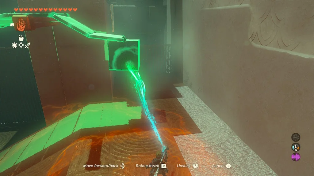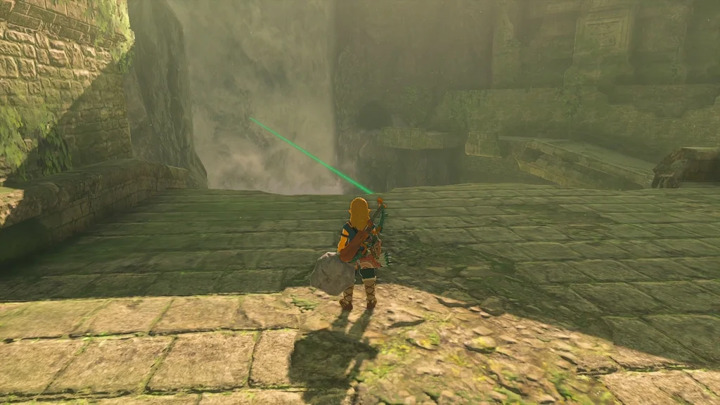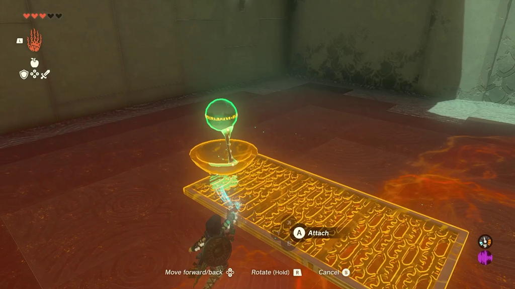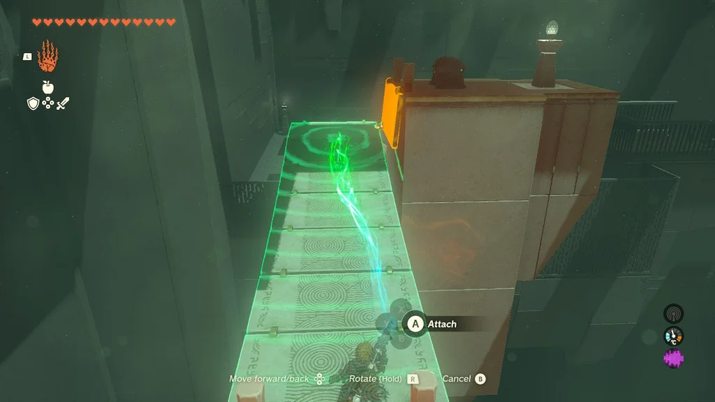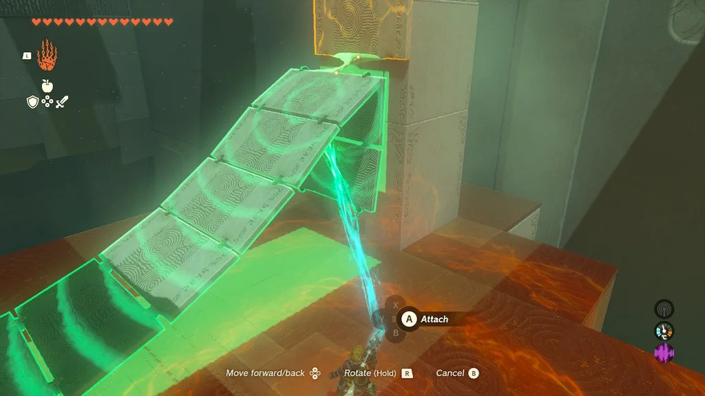Встаньте в чашу, а потім рубіть своїм мечем, щоб активувати всю техніку та запустити Лінка через прірву до кінця храму.