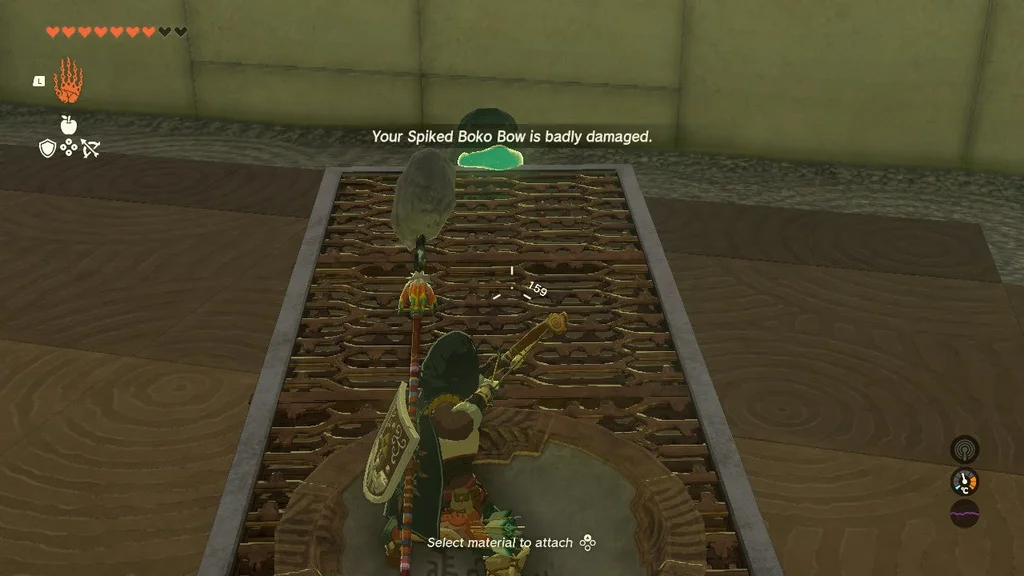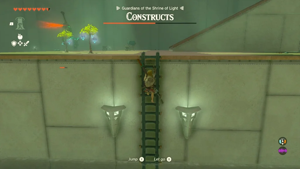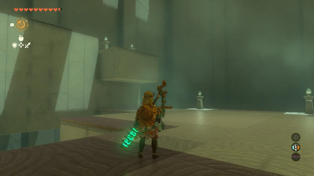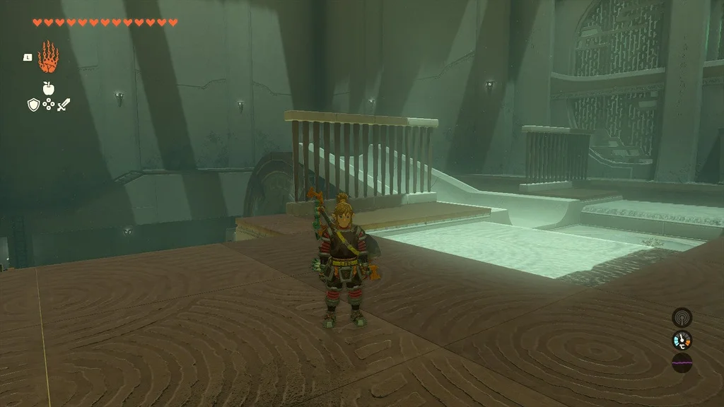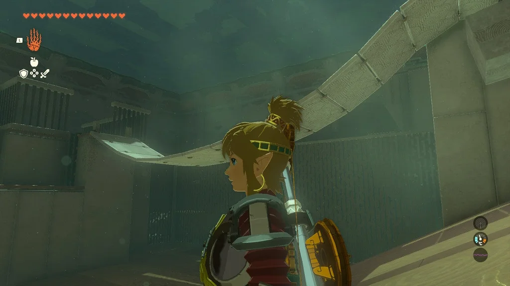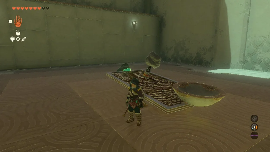Храм затоплений водою, а кілька Конструктів плавають навколо на саморобних плотах. Ви можете заскочити на плоти, піднятися на їхні платформи та бити їх палицею. Конструкти викинуть старий дерев’яний лук, стріли, роги солдатського конструкту та шок-фрукти.