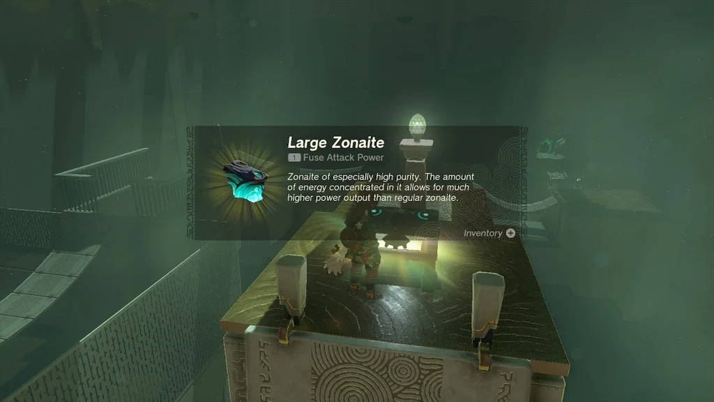 На дальньому боці останнього мосту оберніться і знайдіть скриню високо на виступі. Ви повинні підняти центр провислого моста за допомогою Ultrahand і з’єднати його з підвісною підкладкою під грудьми. Усередині скрині знаходиться Великий Зонайт.