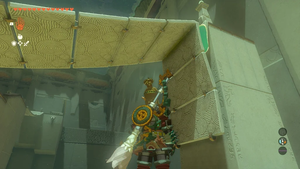 Після перемоги над обома ворогами, парируючи їхні снаряди, увійдіть через останні ворота та візьміть могутній щит зонаїтів, перш ніж завершити храм.