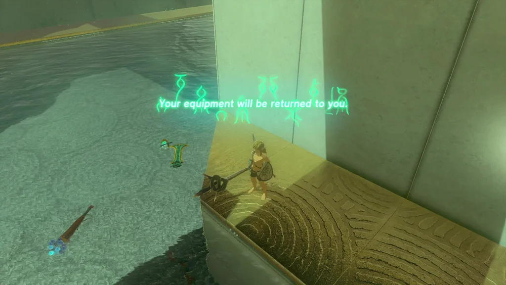 Використовували те, що було відразу під рукою. Коли ви переможете останню конструкцію, храм поверне вам ваше спорядження, і ви зможете піднятися по рампі до відкритих воріт.