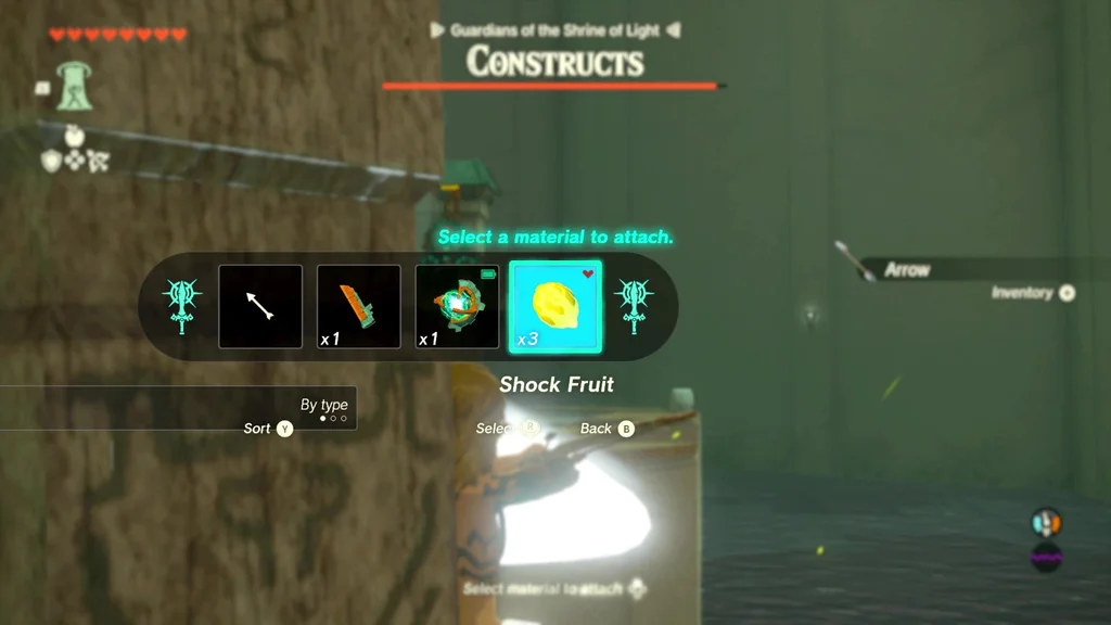 Ви можете зануритися у воду та підпливти до головної платформи та стріляти там у Конструкти за допомогою лука та стріл, злитих із шок-фруктом.