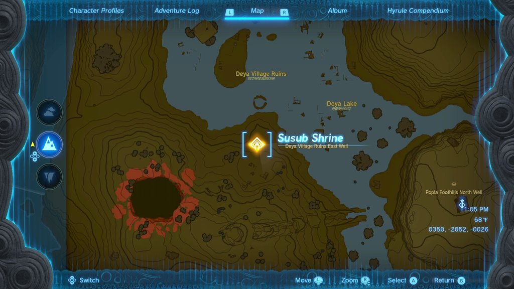 Опинившись усередині, оберніть ліворуч і підніміться на виступ, щоб знайти святилище Сусуб.