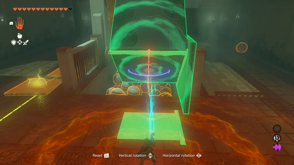 Перш ніж почати, натисніть перемикач і подивіться праворуч від перемикача, щоб побачити скриню зі скарбами на платформі. Ви можете піднятися на нього та отримати заряд великої зони.