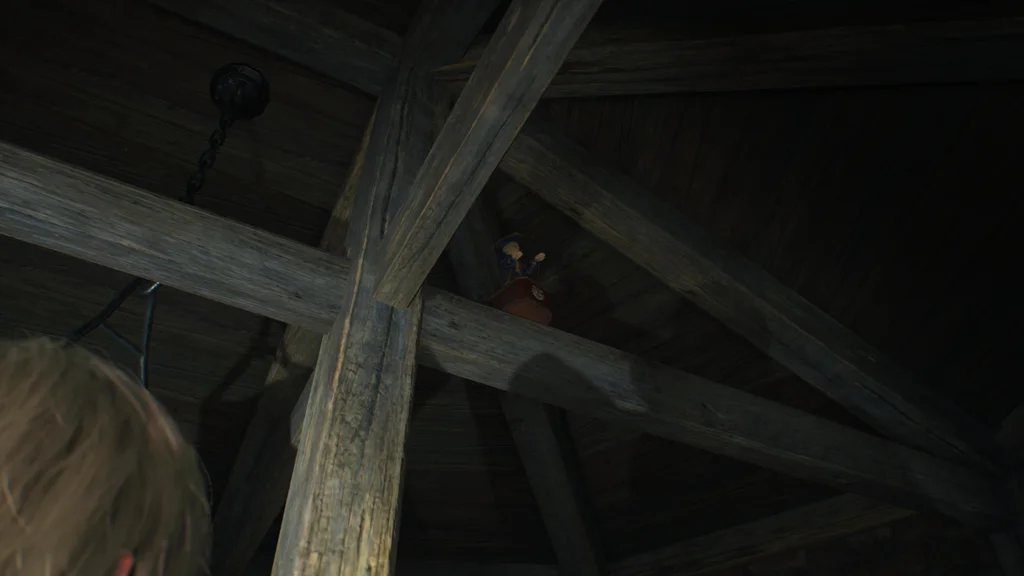 Якщо ви не знайшли розбірну драбину в розділі 2, підніміться нагору в спальню та перемістіть рамку для картин на стіні, щоб знайти важіль. Потягніть за важіль, і з’явиться складна драбина. Тепер підштовхніть Ешлі на горище та підніміться вгору після того, як вона опустить драбину.