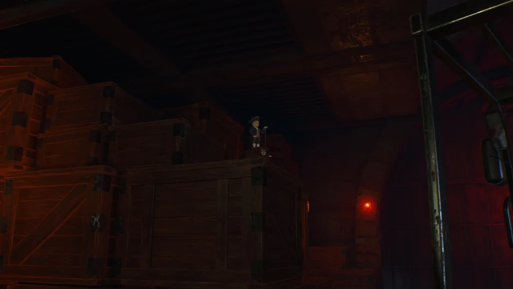 Коли ви досягнете верхньої частини драбини, ви помітите кілька ящиків праворуч. Щоб знайти цю заводну ляльку, вам потрібно буде обійти територію, щоб дістатися до іншої сторони цих ящиків. Заводний Кастелан чекатиме на вас на складених мішках з піском.