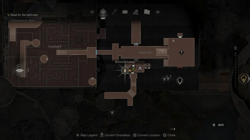 Лампа-метелик знаходиться в тій самій кімнаті, де Торговець створив магазин у Великій залі. Отримавши Кубічний пристрій, використовуйте його, щоб розблокувати скриню зі скарбами біля каміна.