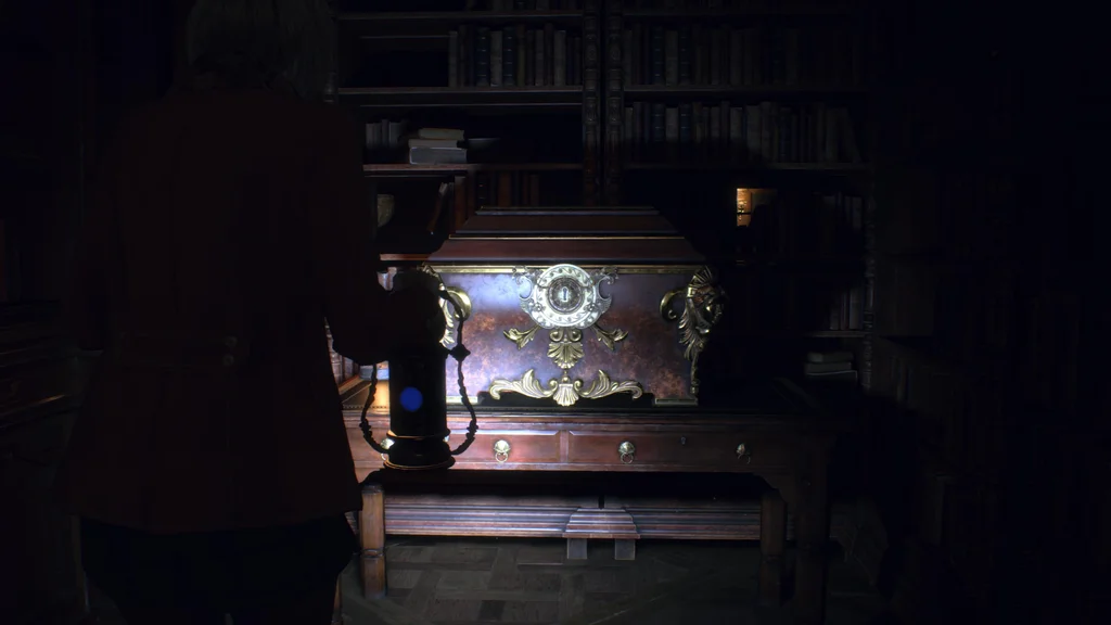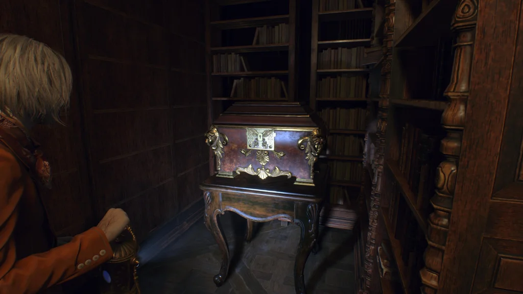 Цей скарб можна зібрати, знайшовши зв’язку ключів під час гри за Ешлі. З ключами в руках обшукайте західний кінець бібліотеки та присідайте через щілину на полицях, щоб знайти скриню.