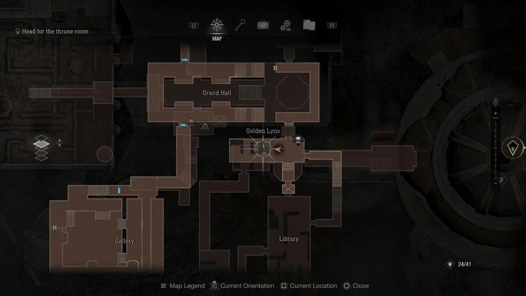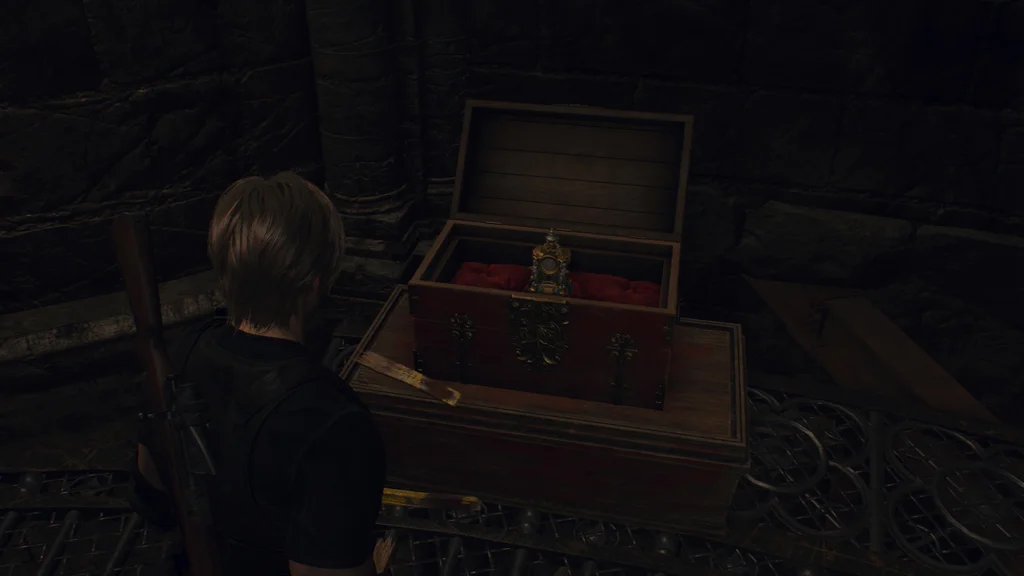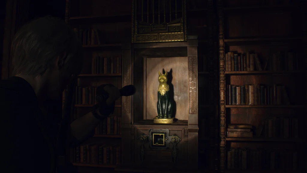 Хоча ви, ймовірно, отримали цей скарб під час гри за Ешлі, його неможливо отримати, доки ви не візьмете під контроль Леона в розділі 10, тому що вам потрібен кубічний пристрій, щоб розблокувати його. Від бібліотеки йдіть стежкою на схід і підніміться сходами. Скринька зі скарбами, у якій знаходиться Золота рись, буде прямо попереду, тож використовуйте кубічний пристрій, щоб підібрати цю реліквію.