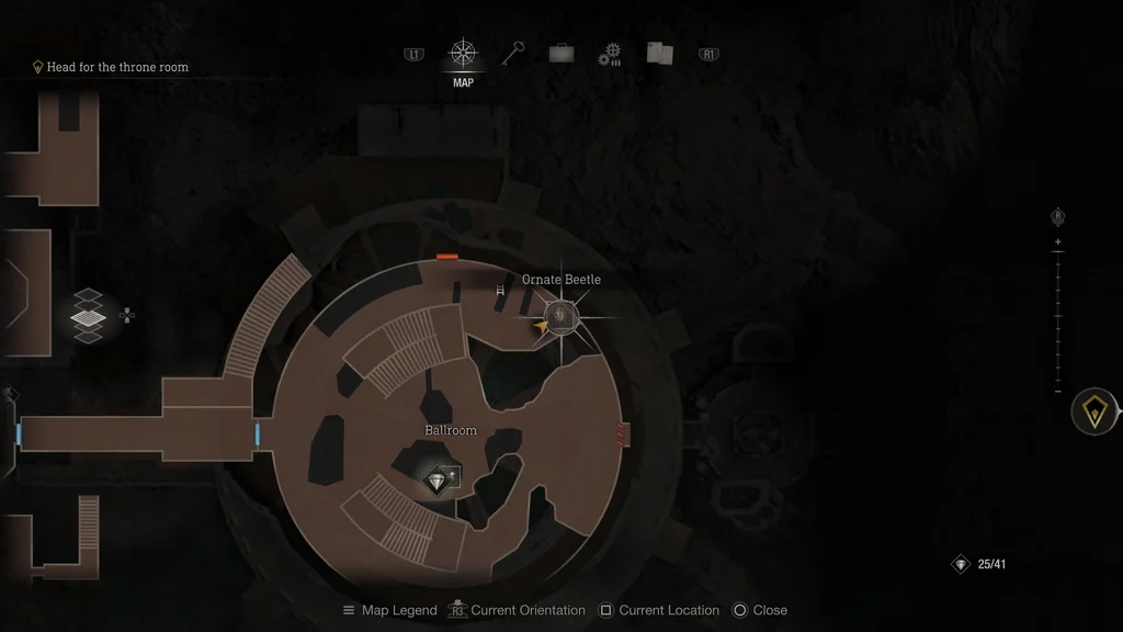 Другий декоративний жук у регіоні замку знаходиться на першому поверсі Бальної зали. Увійшовши до Бальної зали, вас зустріне невелика армія Новістадорів. Спустіться сходами, виймаючи їх, а потім йдіть стежкою на північний схід. Коли ви дійдете до глухого кута, ви знайдете скриню з цим скарбом.