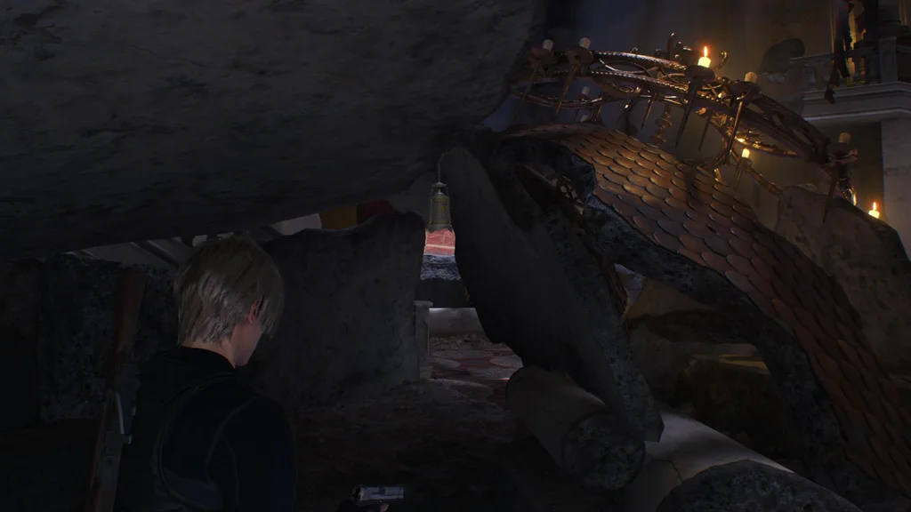 Після возз’єднання з Ешлі в кінці глави 8 – Зубці замку поверніться до області на схід від Wine Cellar, який ви розблокували за допомогою Багряного ліхтаря, отриманого від Фанатика в червоній мантії.